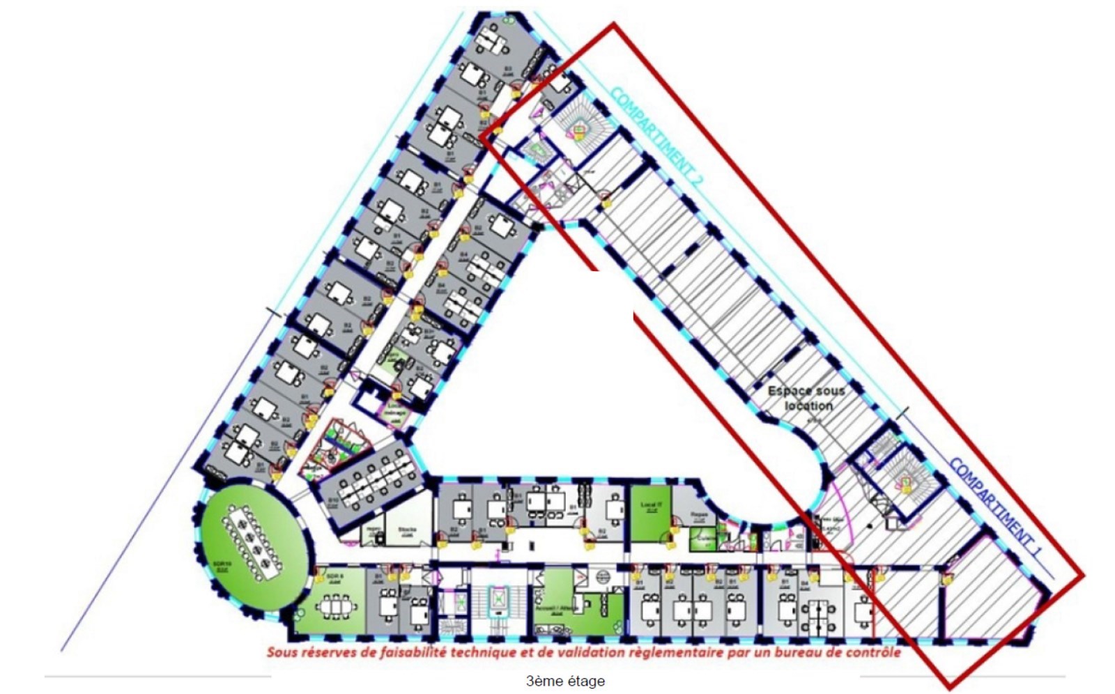 . Aménagement flexible (mixte openspace et bureaux cloisonnés)