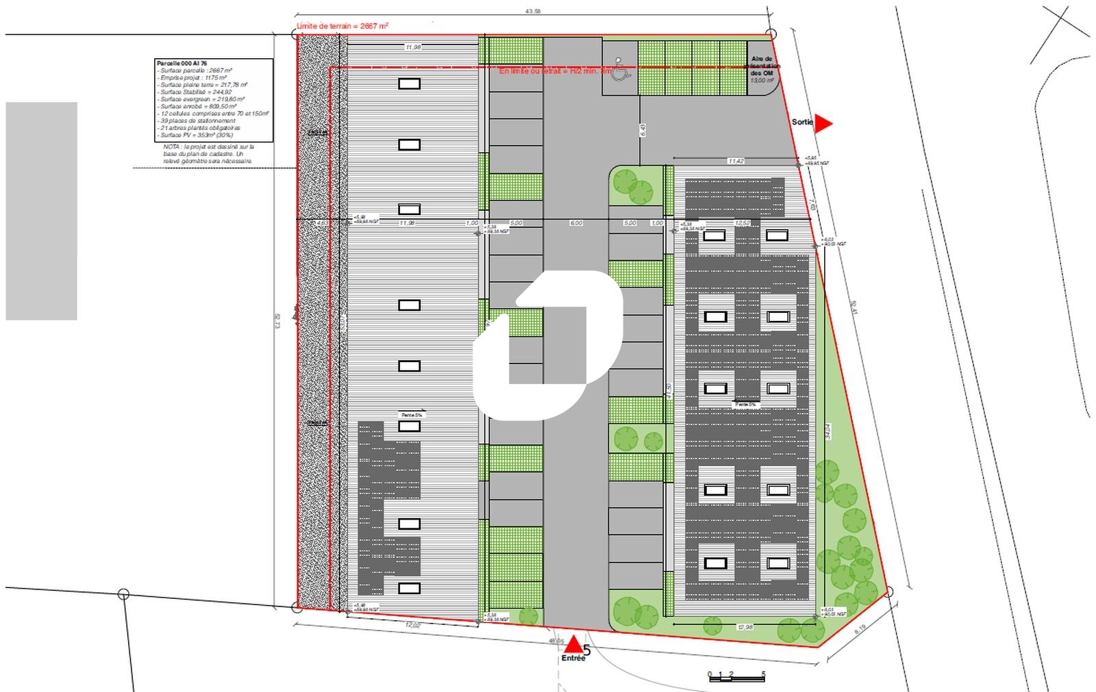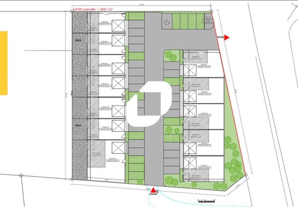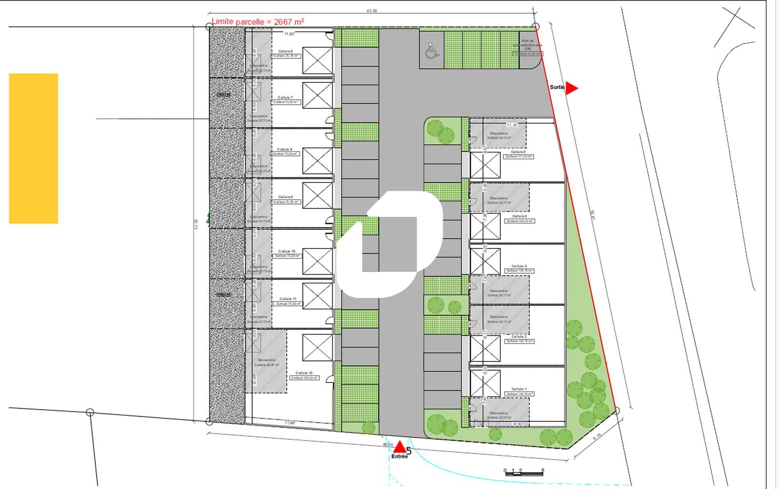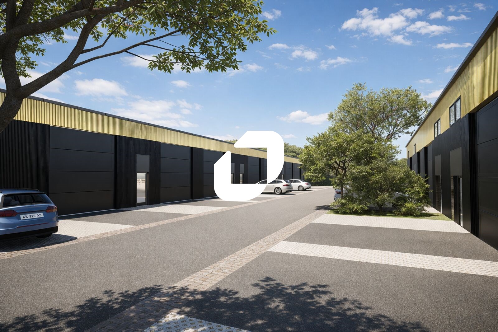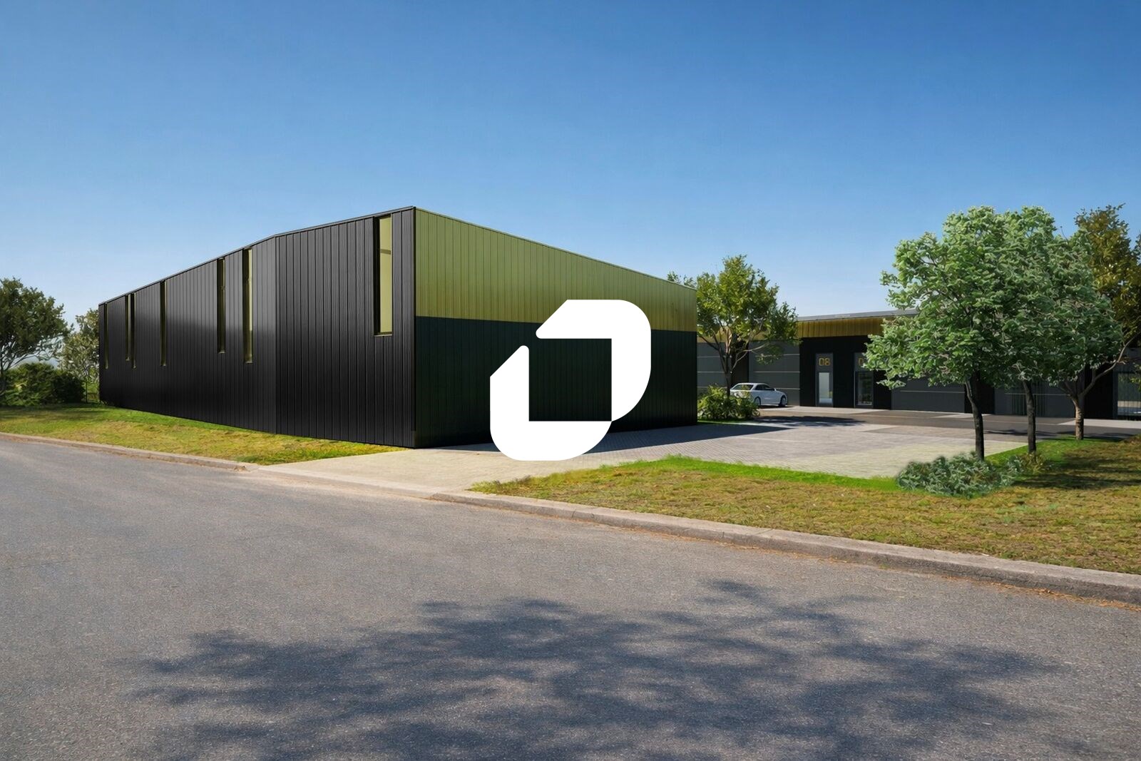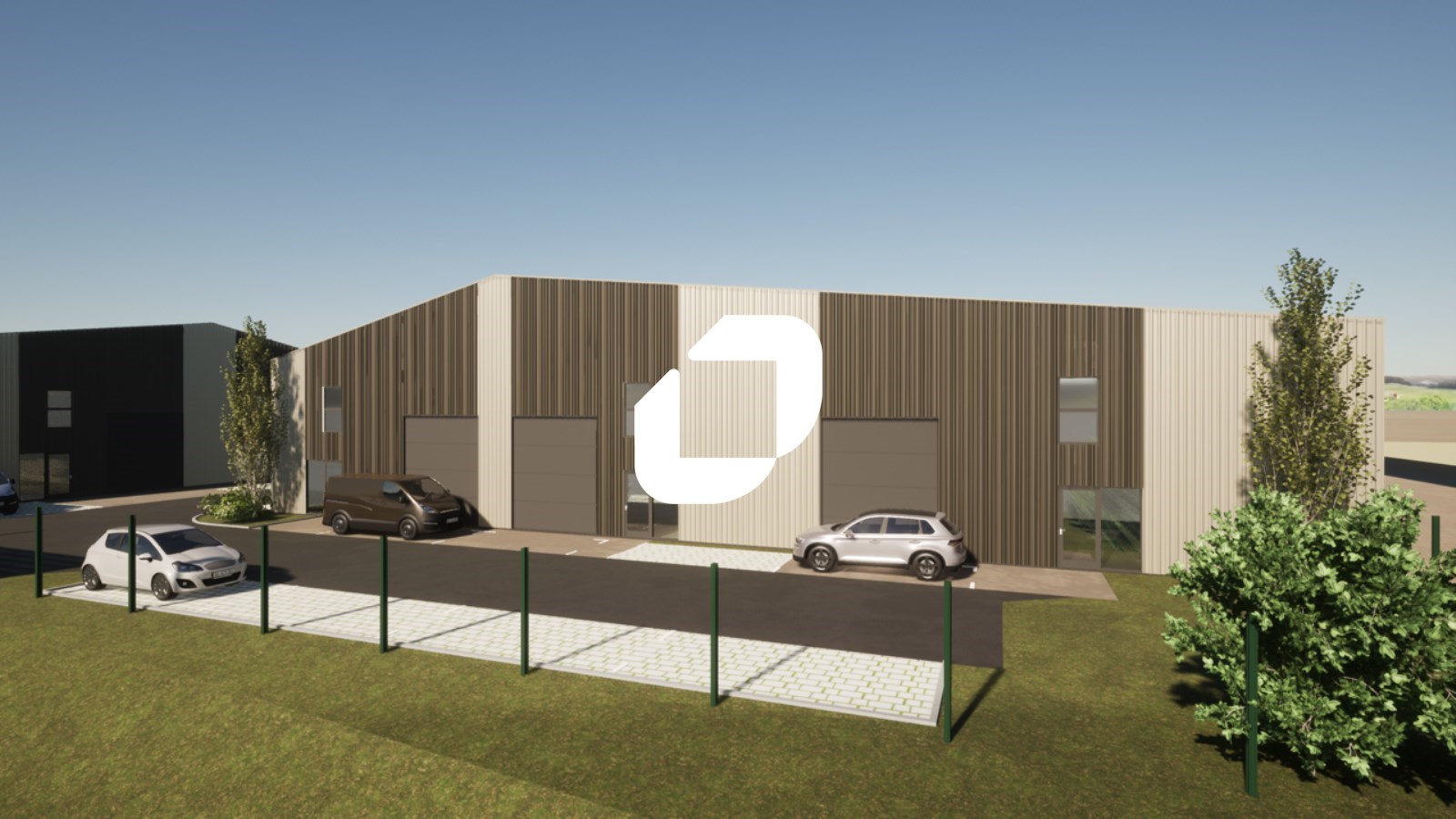 . Façade en bardage . Accès véhicules légers
