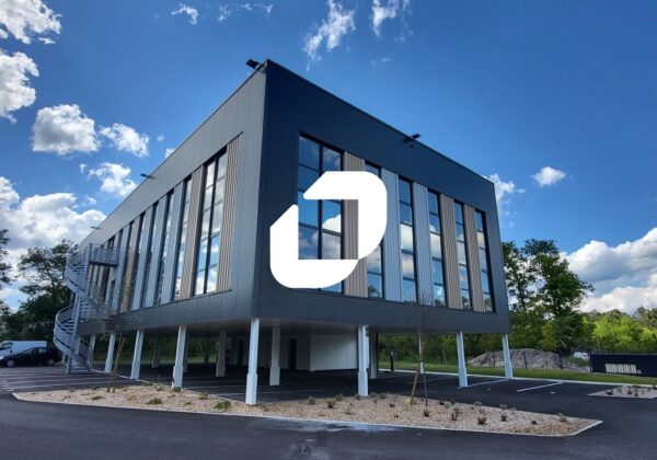 Ce bâtiment moderne de 1 050 m² accueille des bureaux sur deux étages, disposant de la fibre optique.