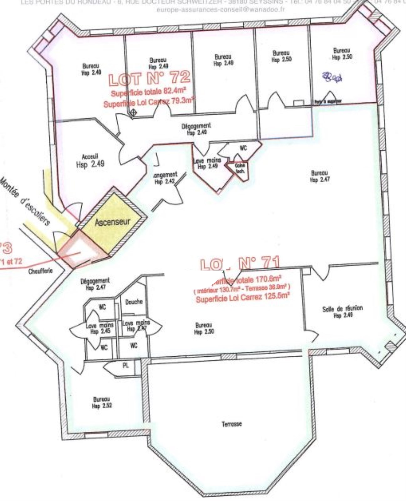 Immprove vous propose à la vente sur la commune de Seyssins dans le secteur du Rondeau, dans un bâtiment tertiaire avec ascenseur, un bureau de 136m² avec terrasse privative de 37m² au 3ème et dernier étage, wc privatif, coin cuisine, 7 places de parkings privatives. Immeuble situé à proximité immédiate des commerces, des transports en communs (bus à 50 mètres, Tram dix minutes, rocade à cinquante mètres et entrée de l’autoroute immédiate).. Prix de vente 250.000 euros hors frais d'agence . Pour plus d’informations merci de nous contacter.