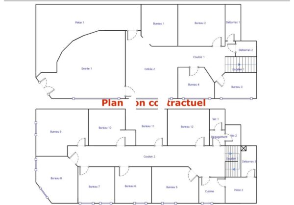 Sur 2 niveaux, ces bureaux bénéficient d'un accès de plain pieds en rez-de-chaussée et d'un étage directement accessible depuis le rez-de-Chaussée.