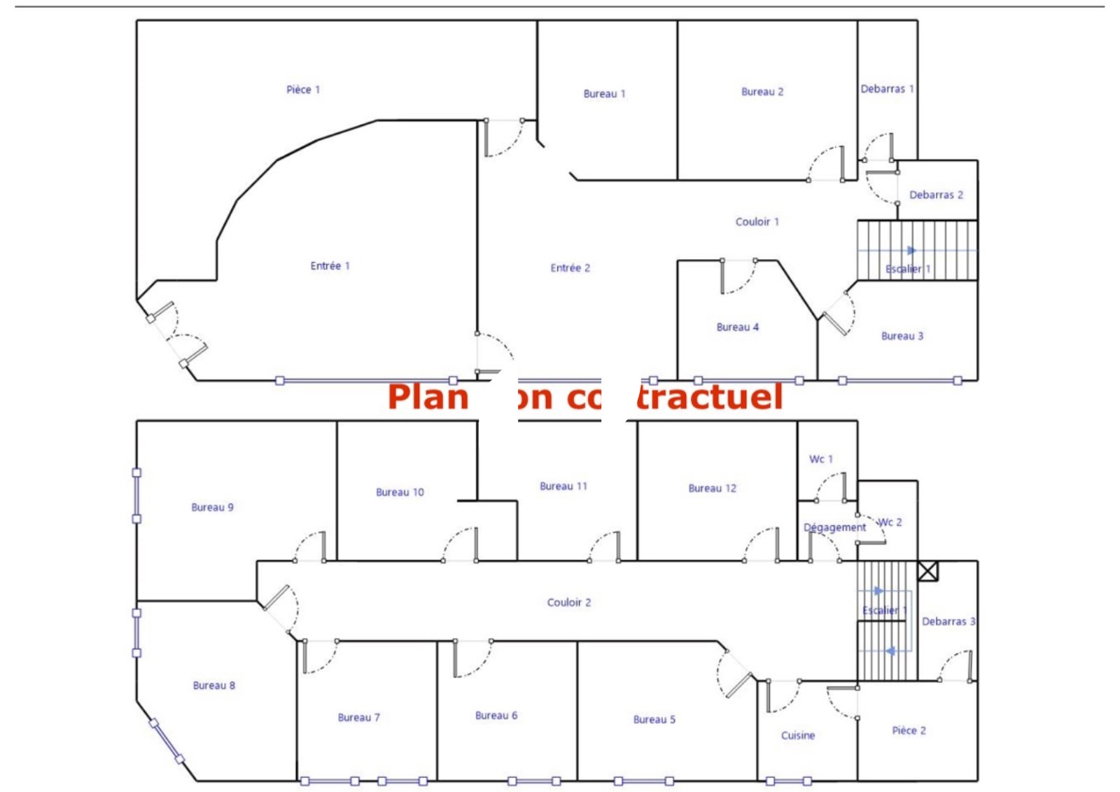 Sur 2 niveaux, ces bureaux bénéficient d'un accès de plain pieds en rez-de-chaussée et d'un étage directement accessible depuis le rez-de-Chaussée.