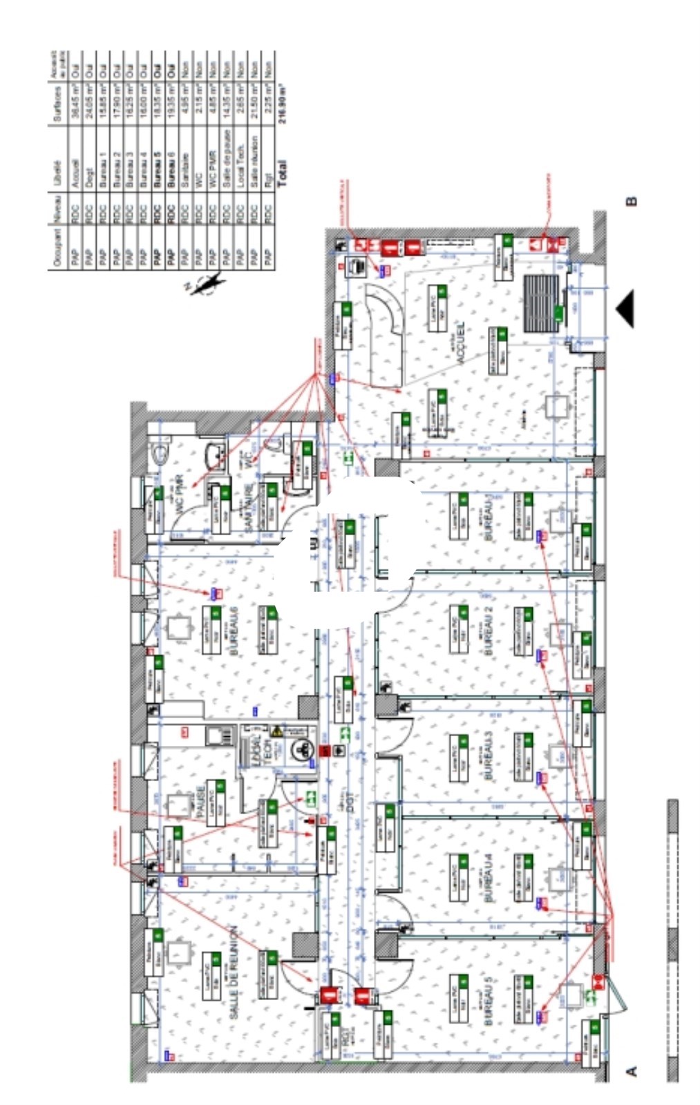 - Sécurité incendie : alarme, extincteurs, détection incendie dans local serveur.