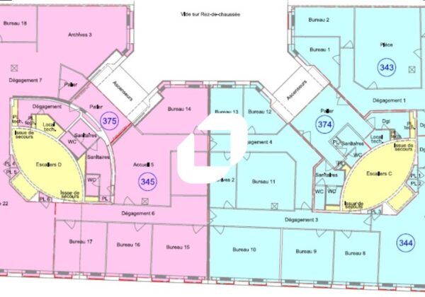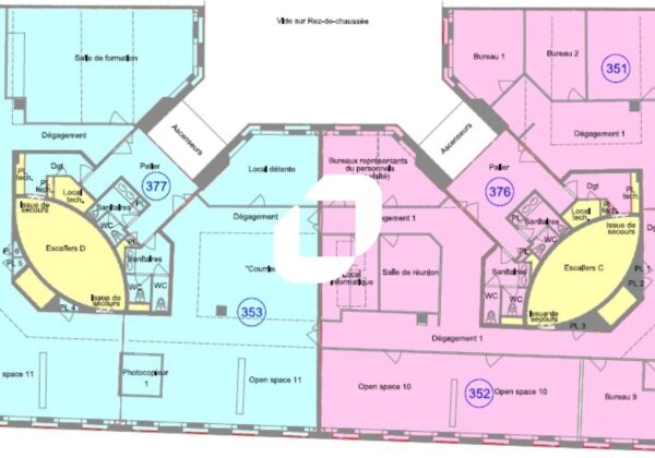 | Bureaux | 1er étage | 336 m² | 5 500.00 | 41.60 |