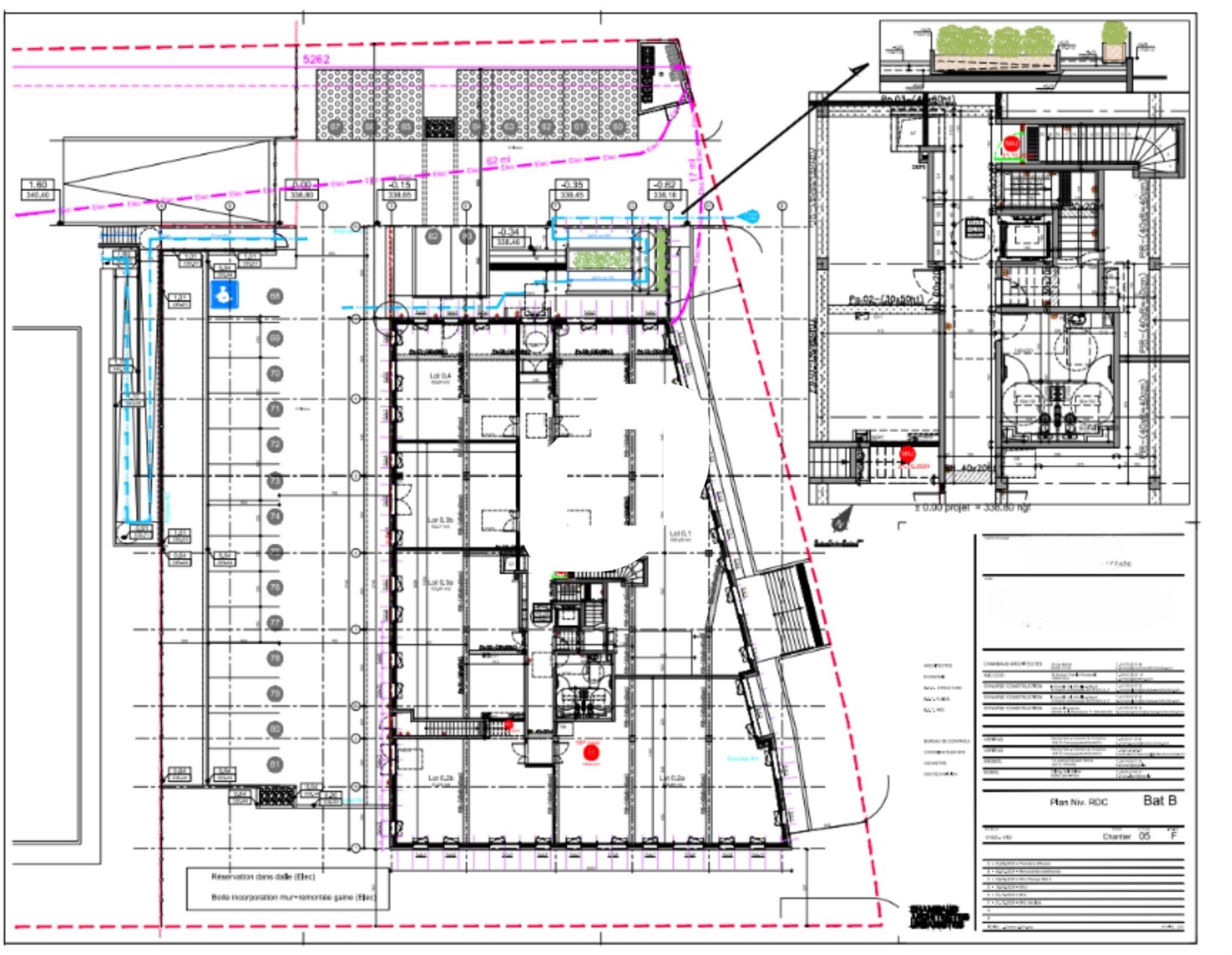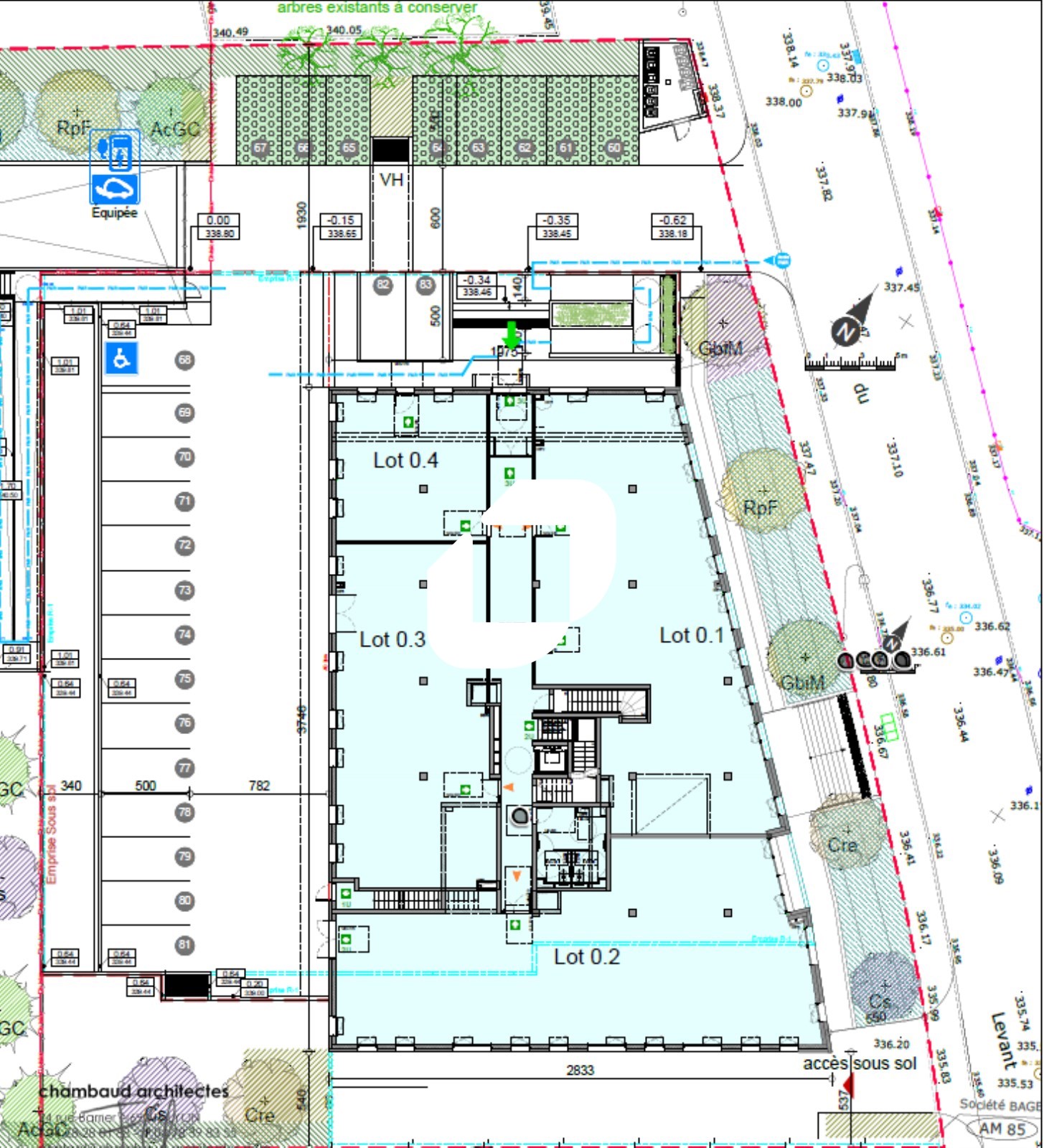 Parkings en sous-sol inclus dans le prix de vente des bureaux (ratio 1/40m²)