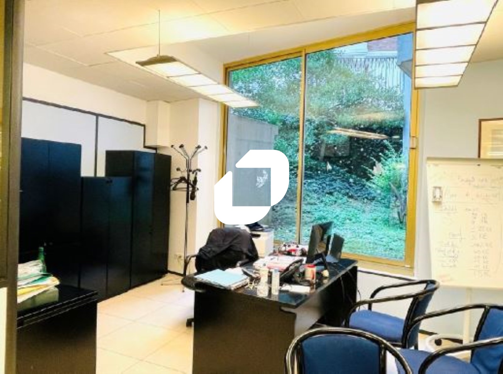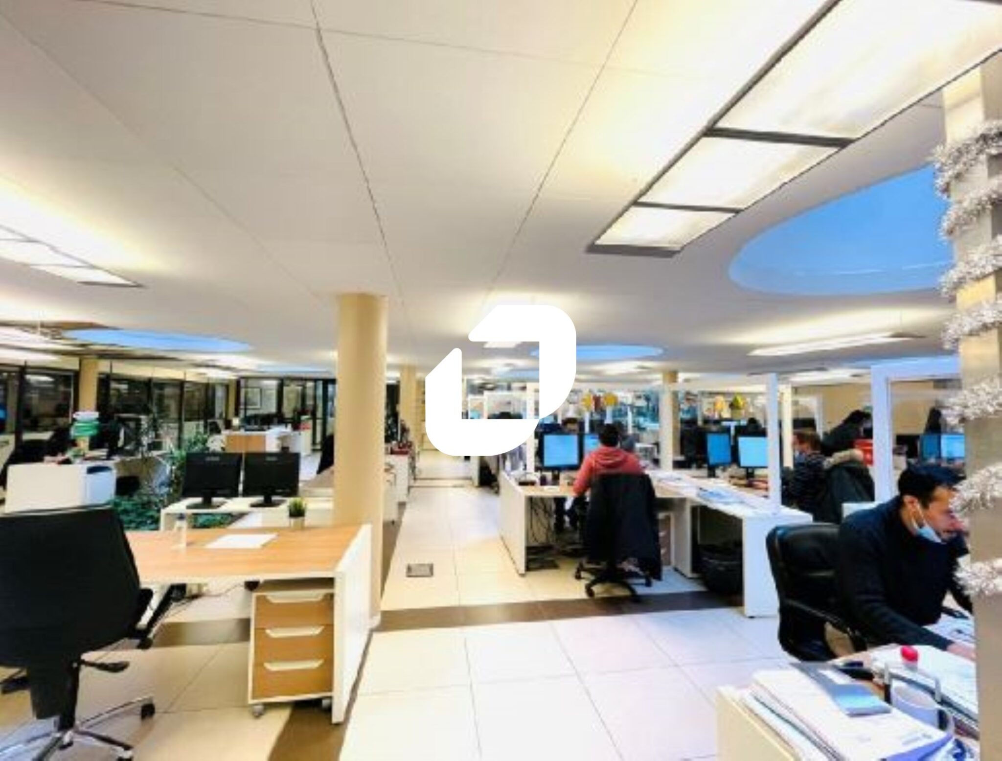 . Bureau bénéficiant d’un éclairage zénithal (12 skydomes) en partie centrale et de quelques parties vitrées sur jardins en partie latérale