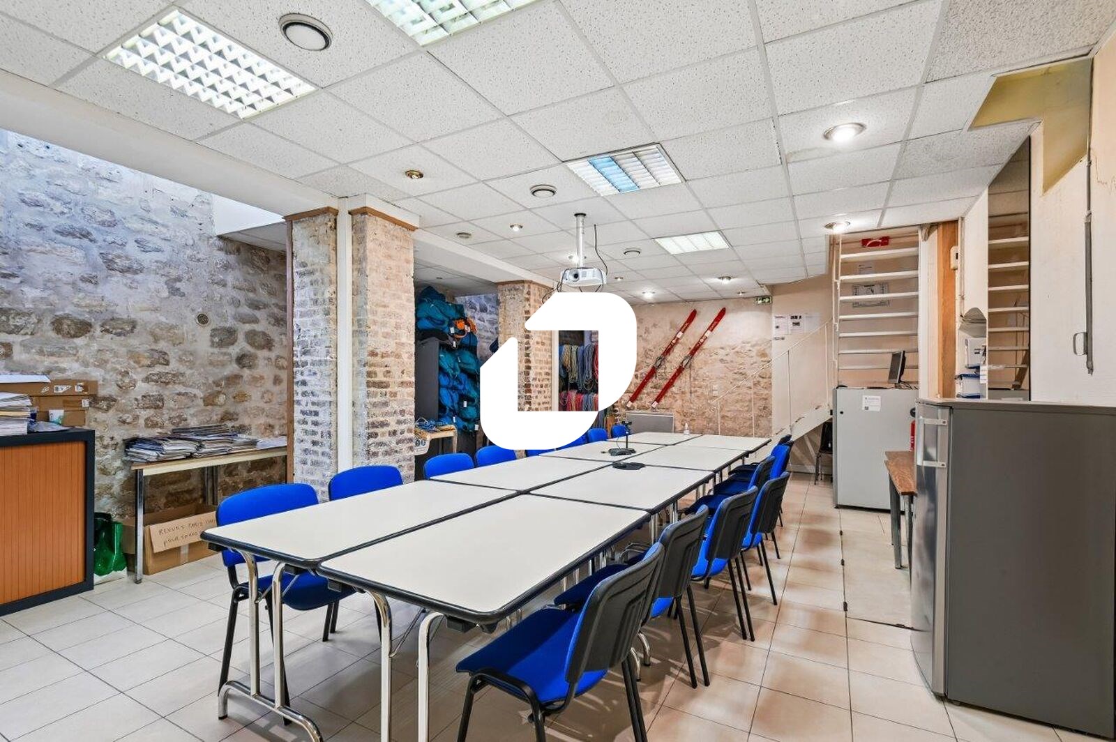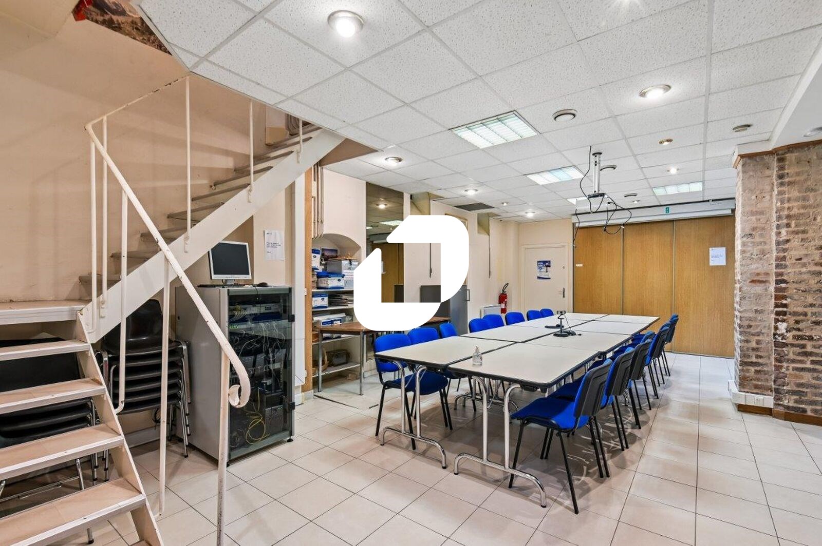 . Sous-sol : une salle de réunion et un bureau fermé