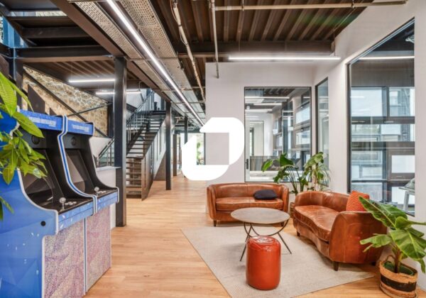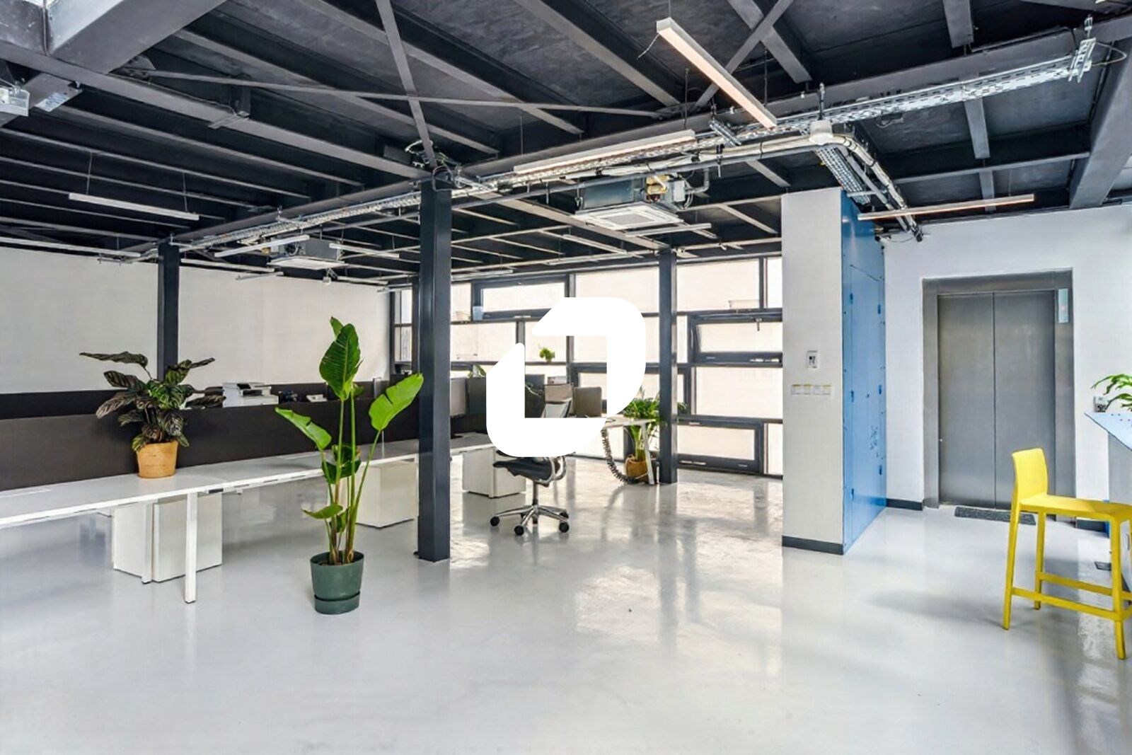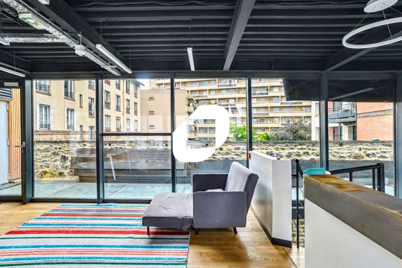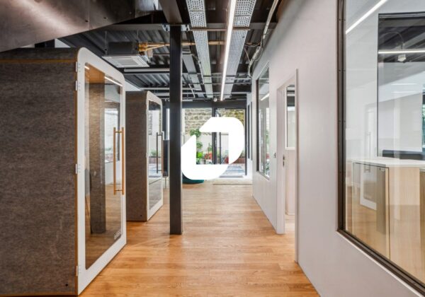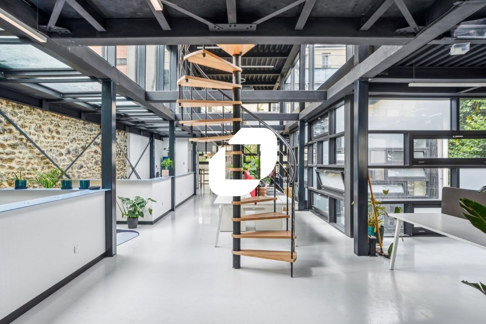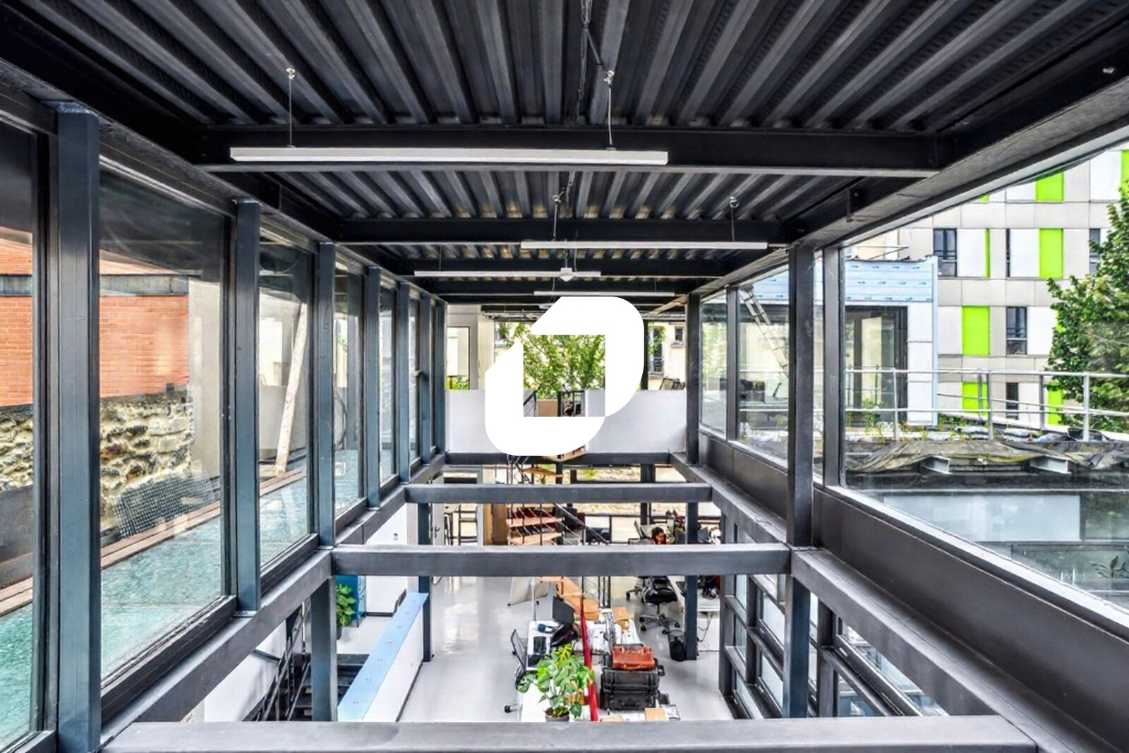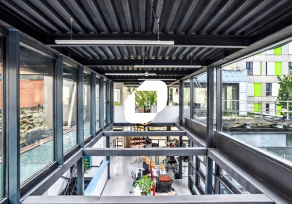 Le bâtiment de style industriel et de standing se développe en R+2 avec un rez-de-patio et un R-1 et bénéficie de 530 m² d’espaces extérieurs privatifs.