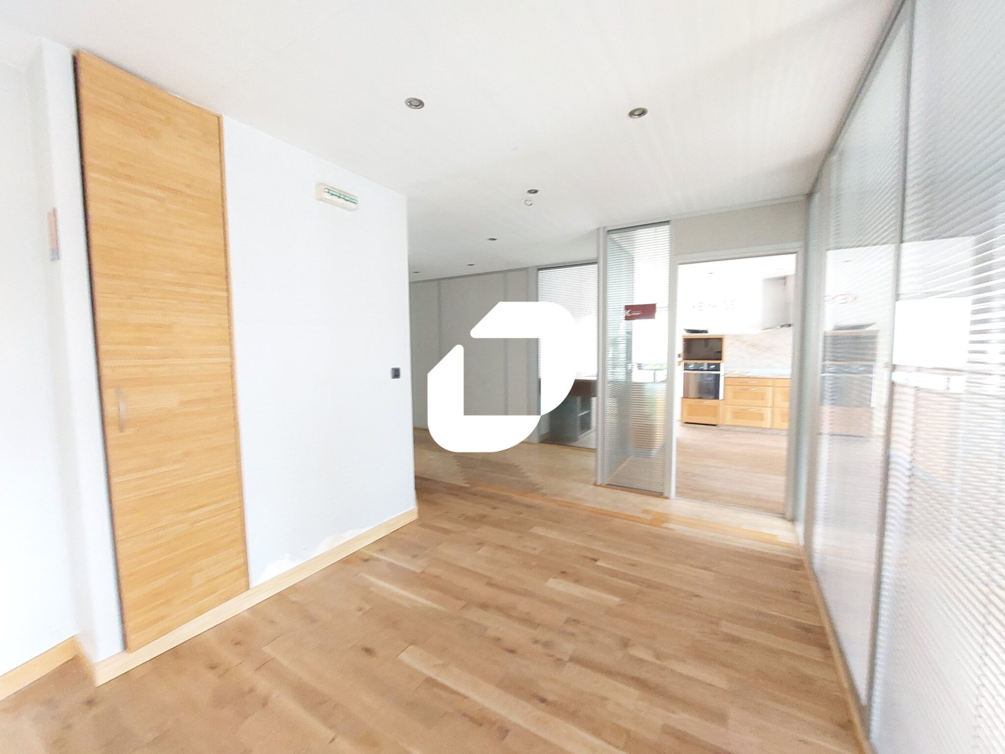 . Plateau de bureaux cloisonnés situé au 1er étage d'un petit immeuble type villa d'entreprises. Année de construction 1990