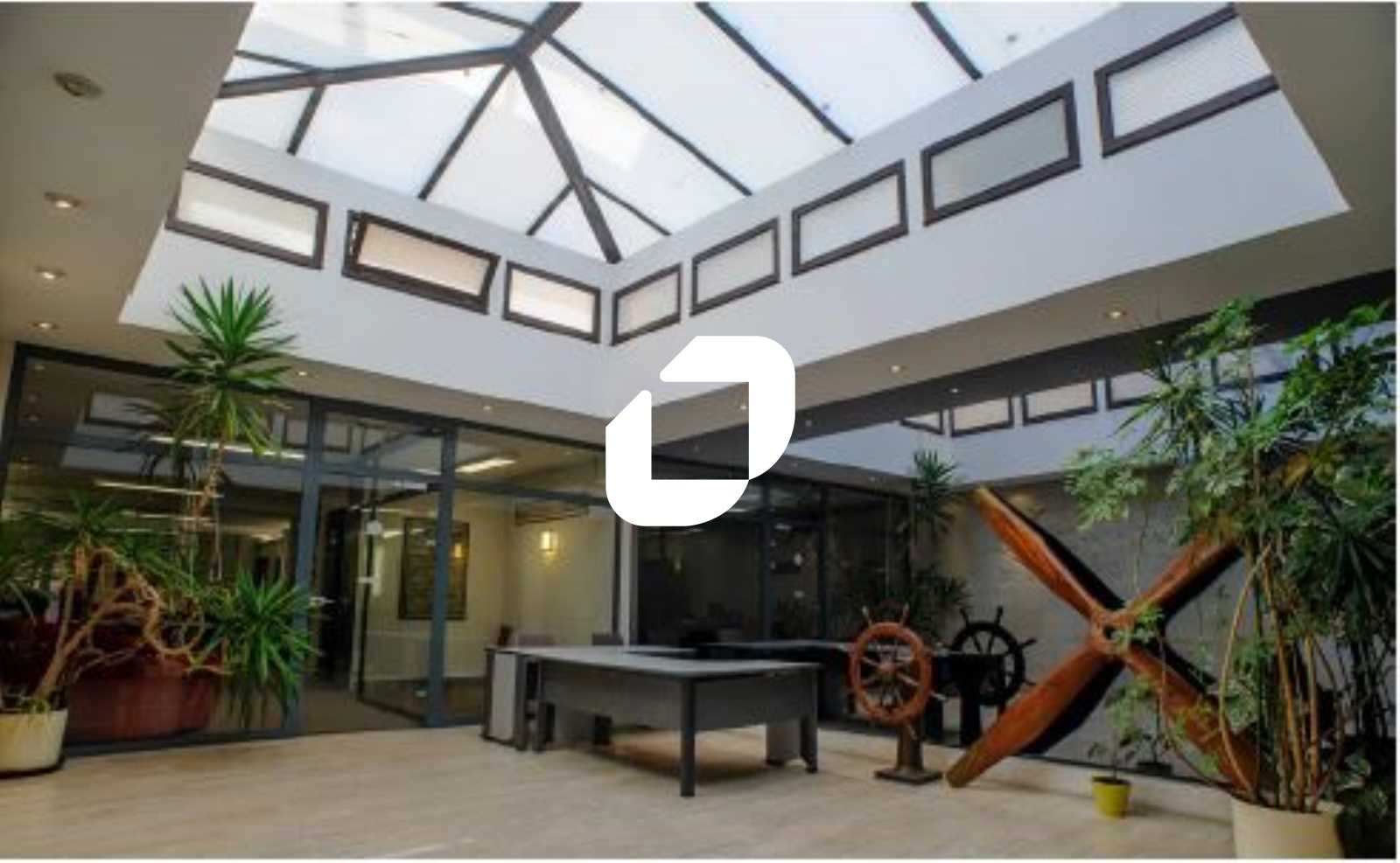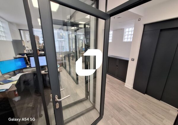 - Au RDC: un accueil sous verrière, des bureaux cloisonnés, salle de réunion, espace ouvert