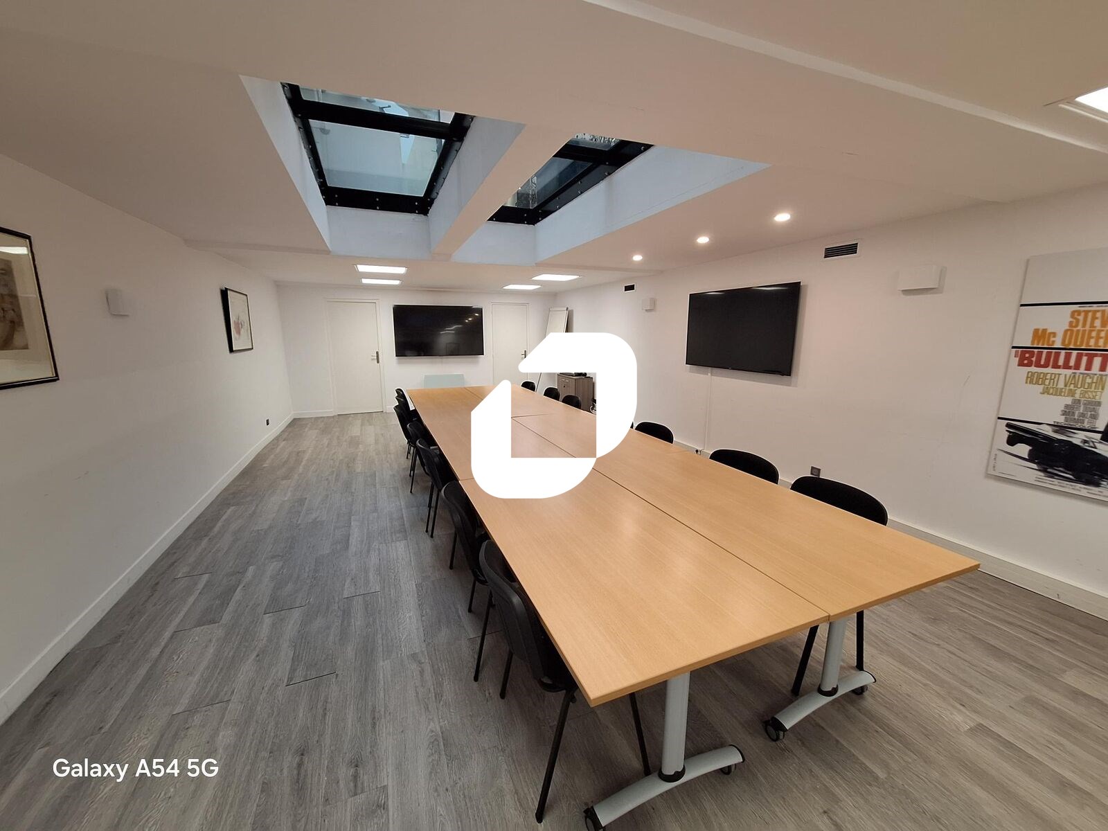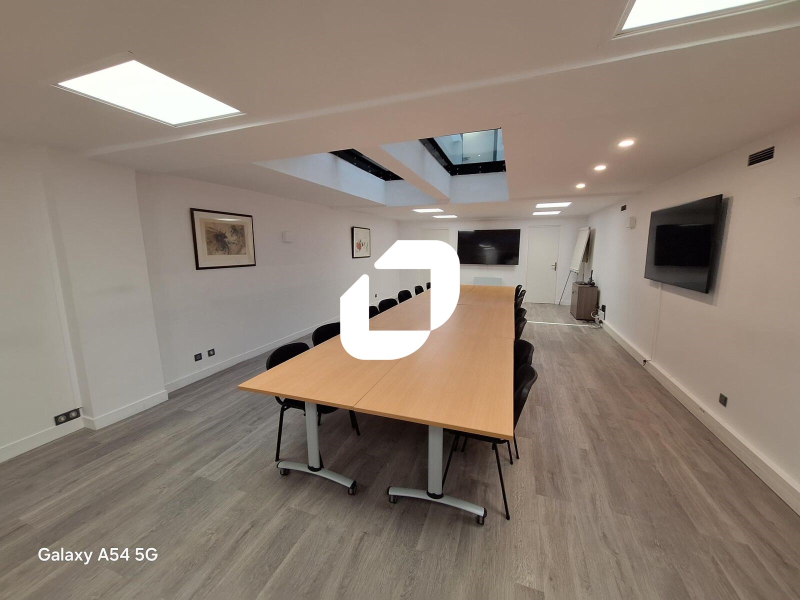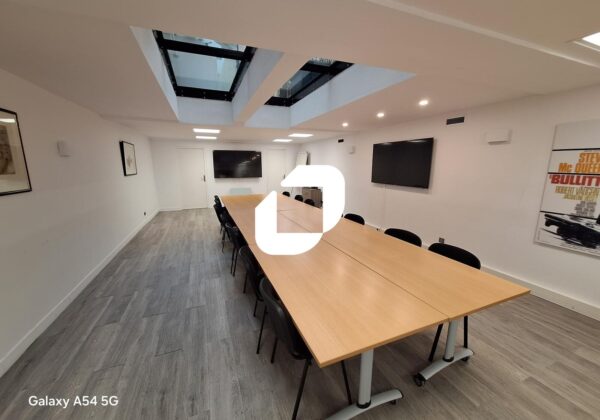 - Au R-1: une belle salle de réunion disposant d'un éclairage zénithal, espace cuisine, sanitaires et douche, une grande salle d'archives