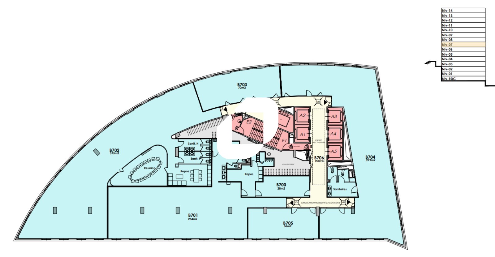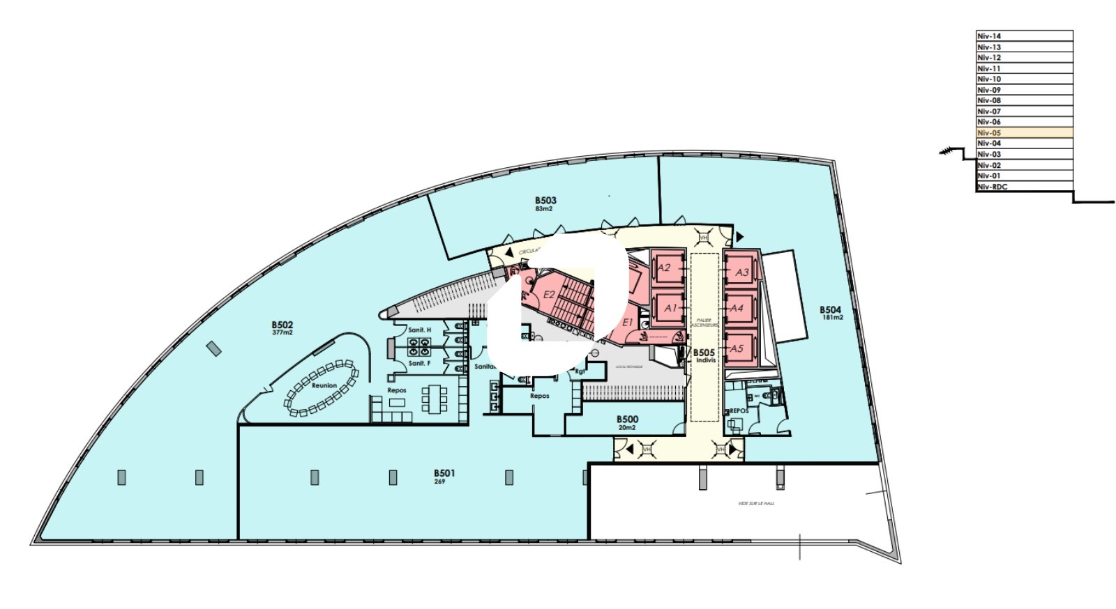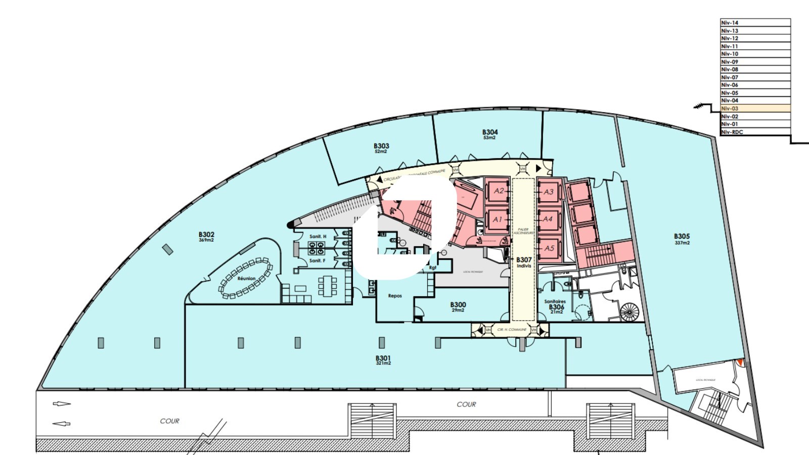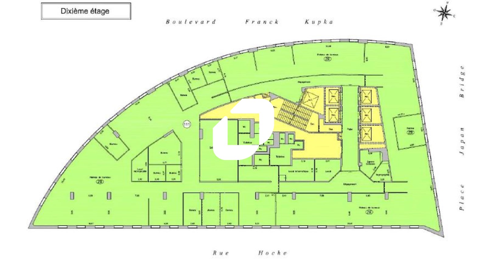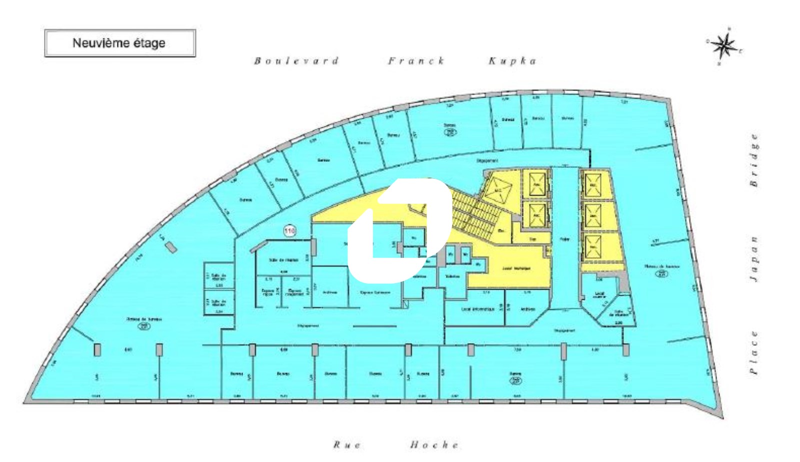 | Bureaux | 5ème étage | 377 m² | 3 000.00 | 100.00 |