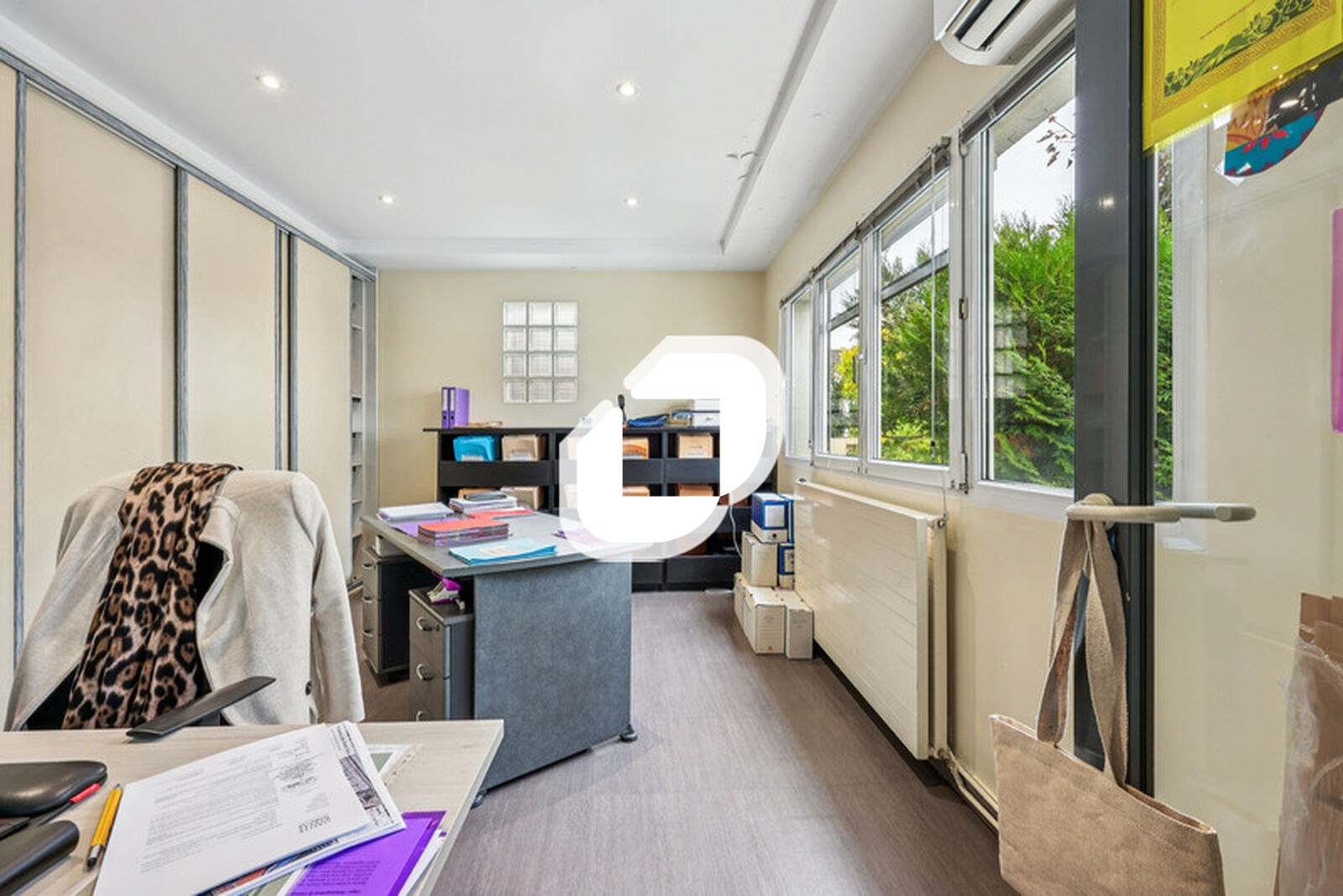 Les locaux d’une surface de 240m² en R+3 sont aménégés, cloisonnés et climatisés. La partie RDC dispose d’une partie stockage léger avec accès par porte sectionelle.