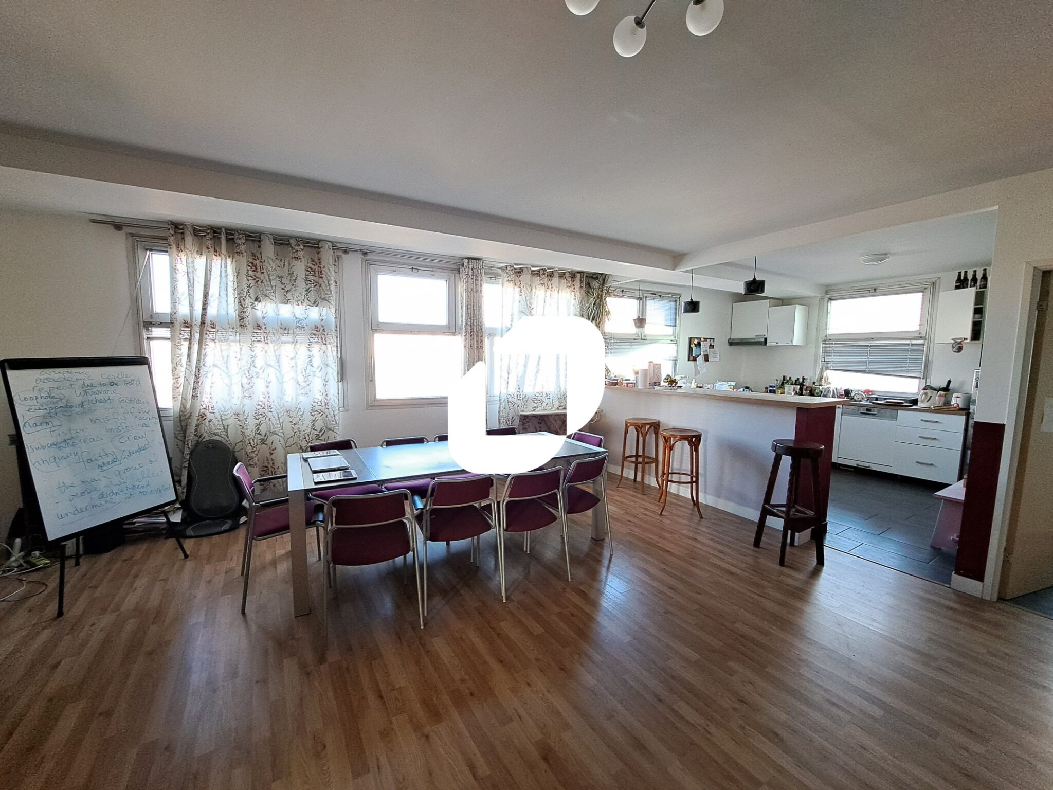 La surface de 236 m² se situe en étage et a été rénovée récemment. Elle bénéficie d’un aménagement fonctionnel au sein d’une copropriété bien tenue.