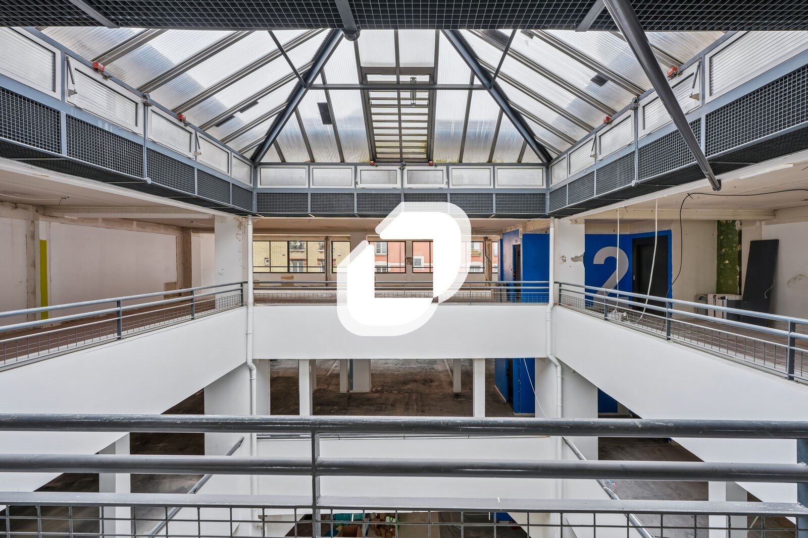 . Sas vitré avec contrôle d'accès . Bureaux brut de béton et curés