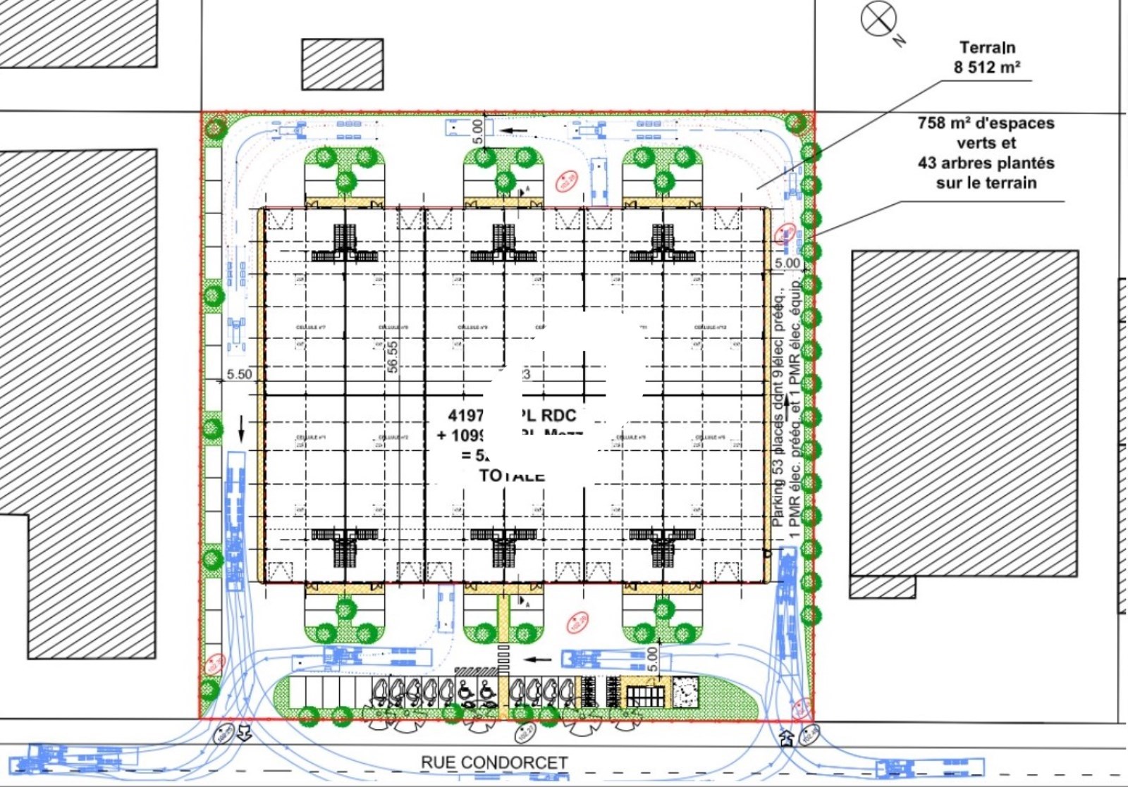 - Surface 5 300 m²