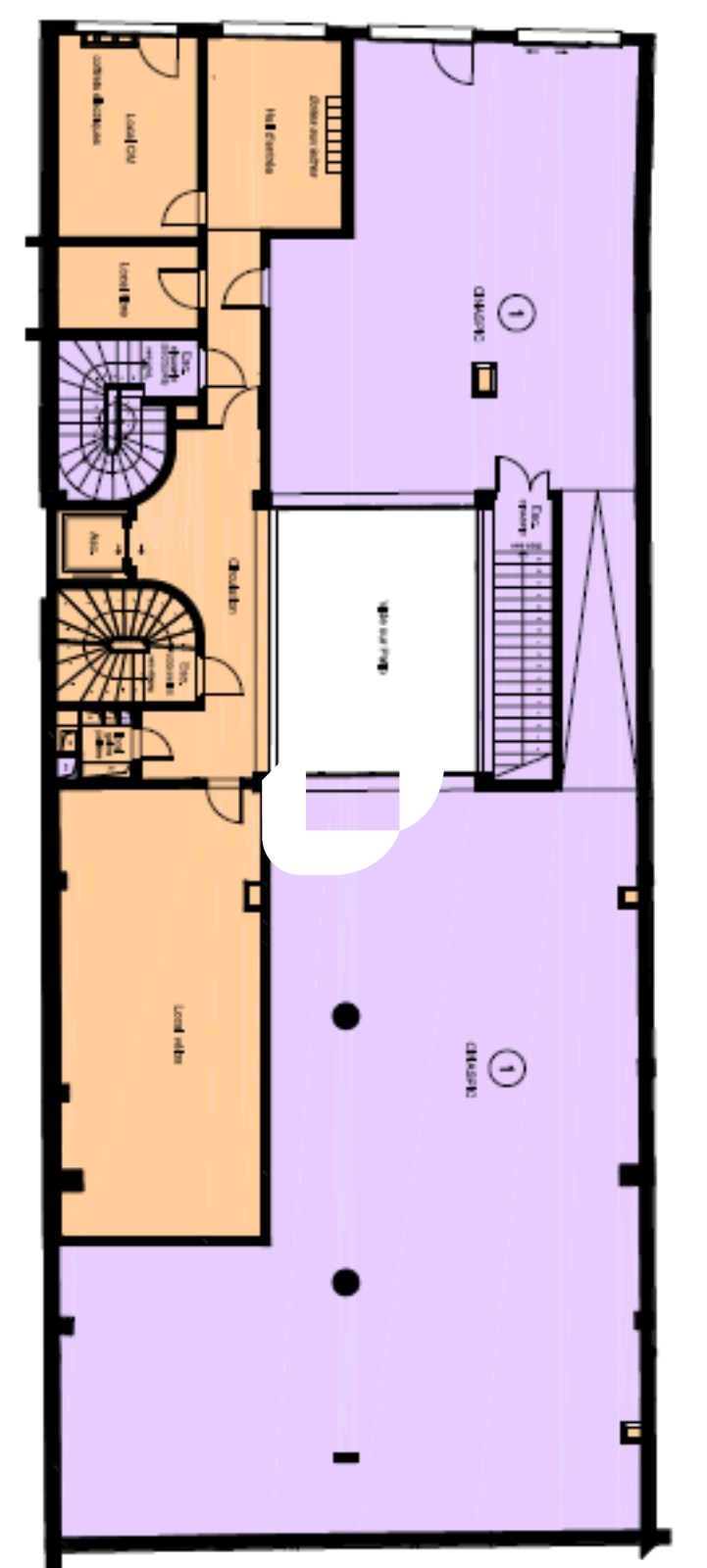 . Hauteurs en rdc entre 2,4m sous poutre et 3m au plus haut