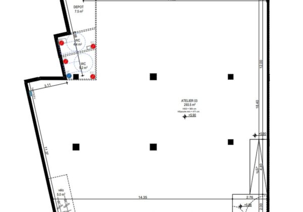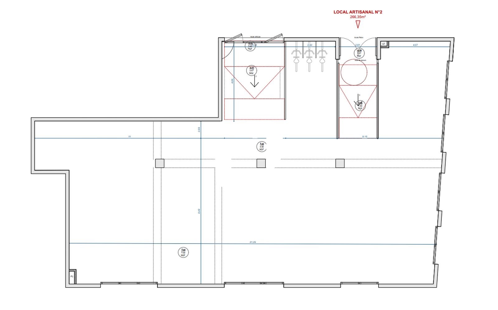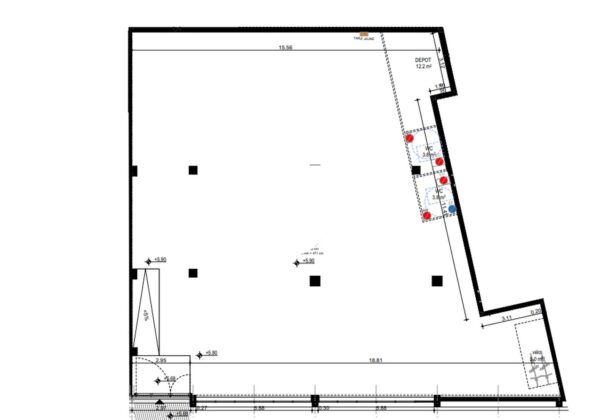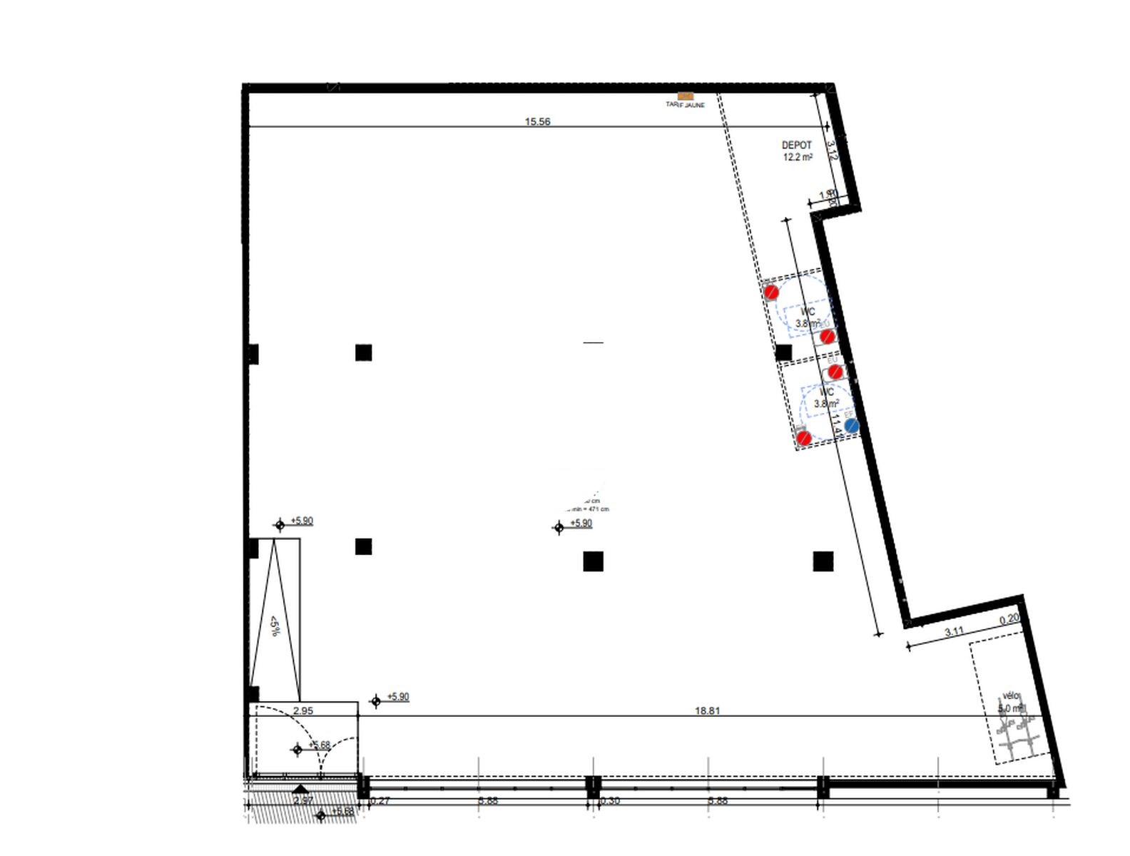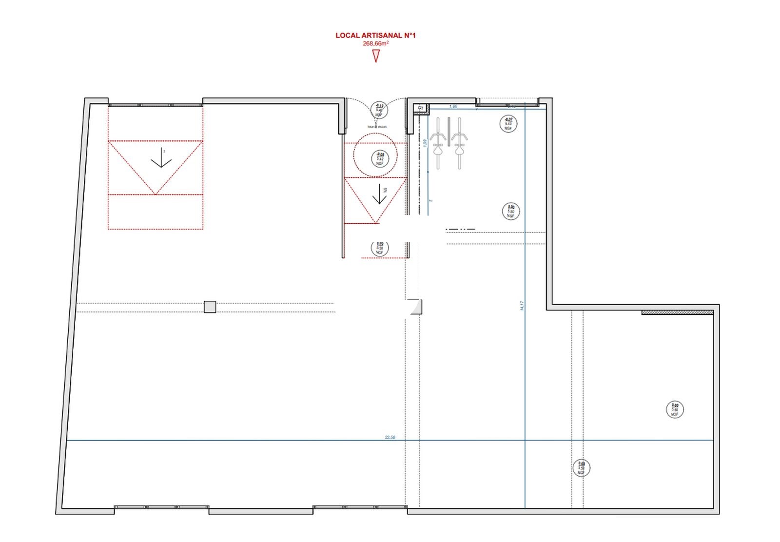 Hauteur libre sous dalle : entre 5,6 et 6 m