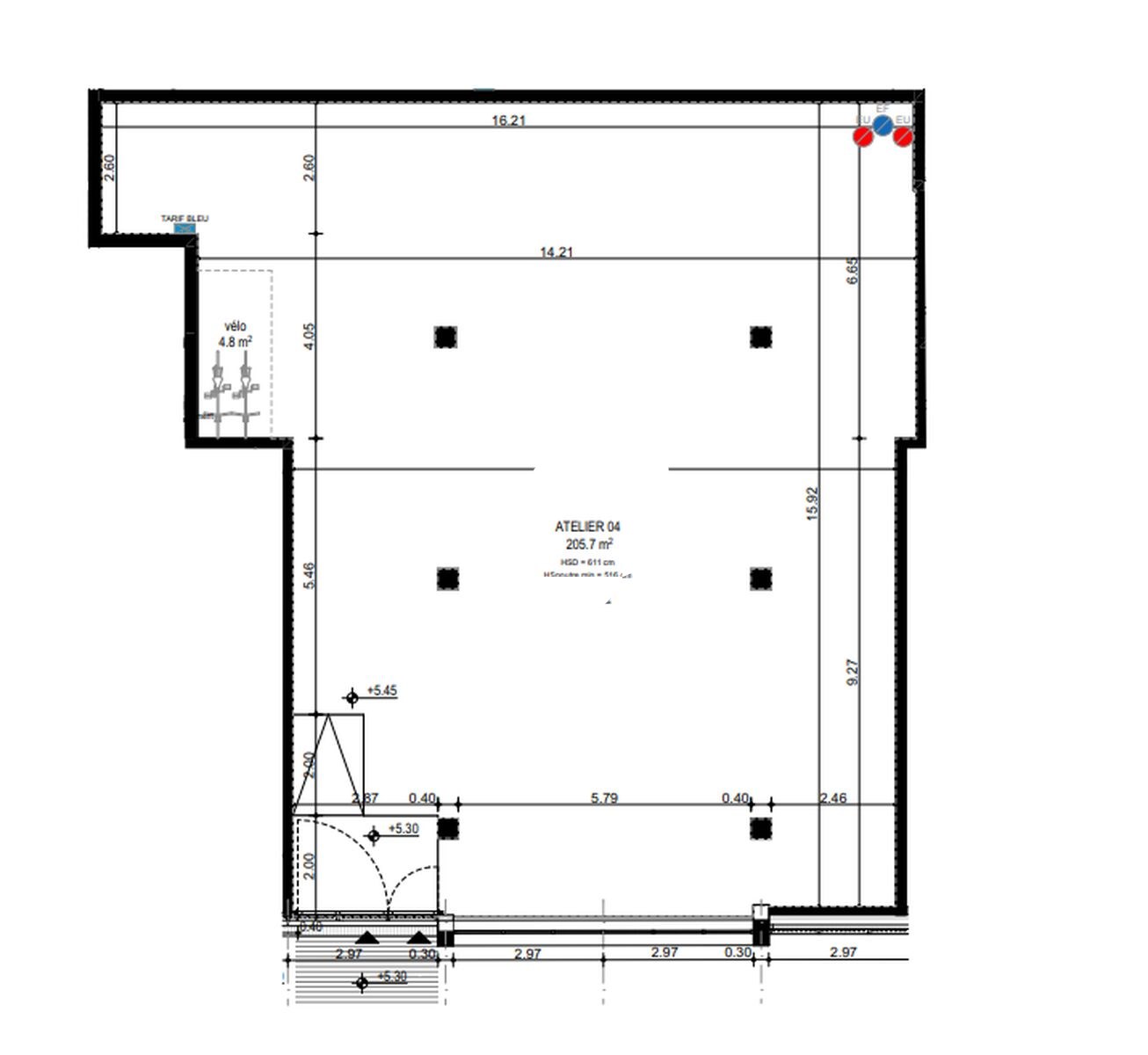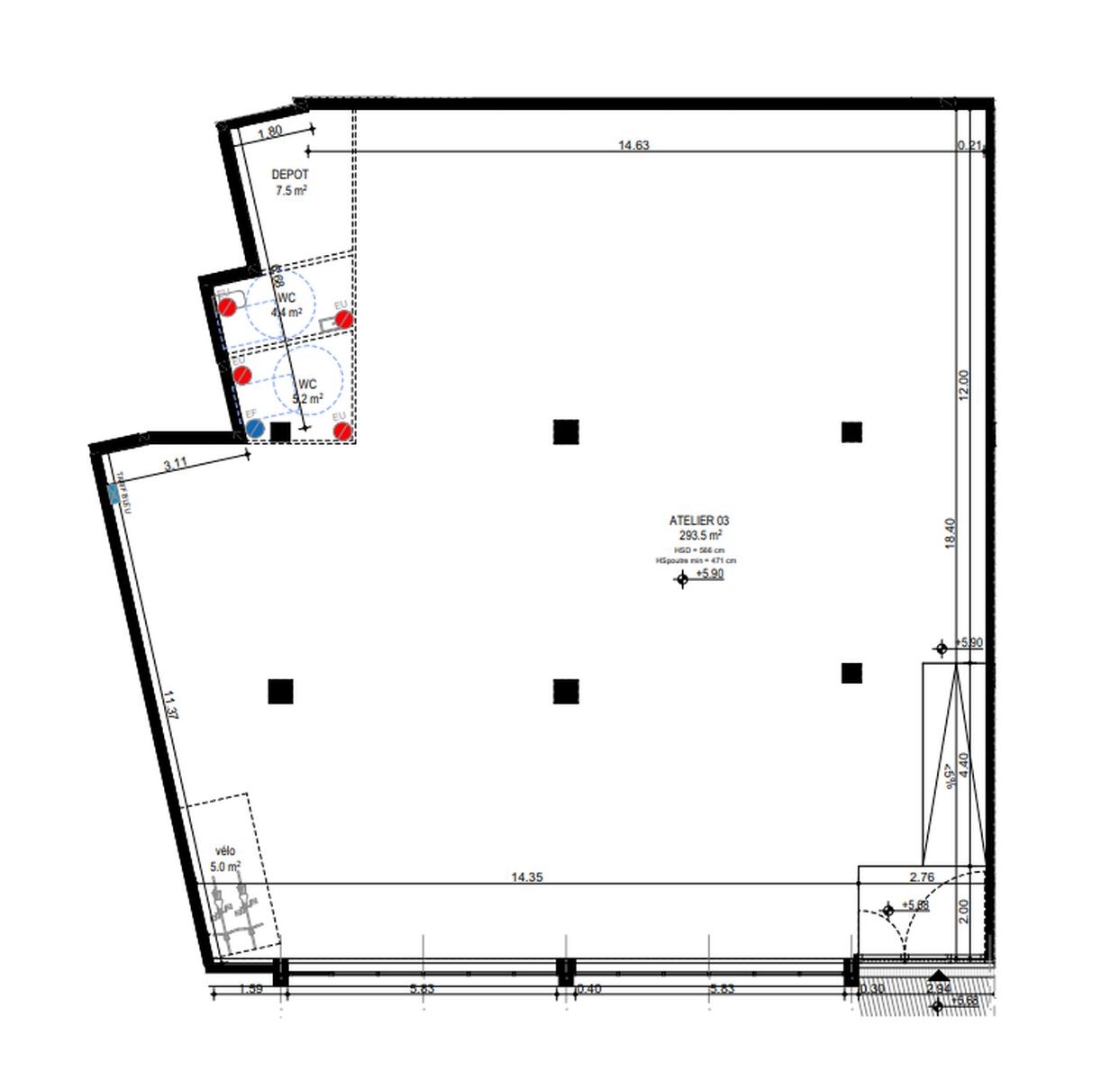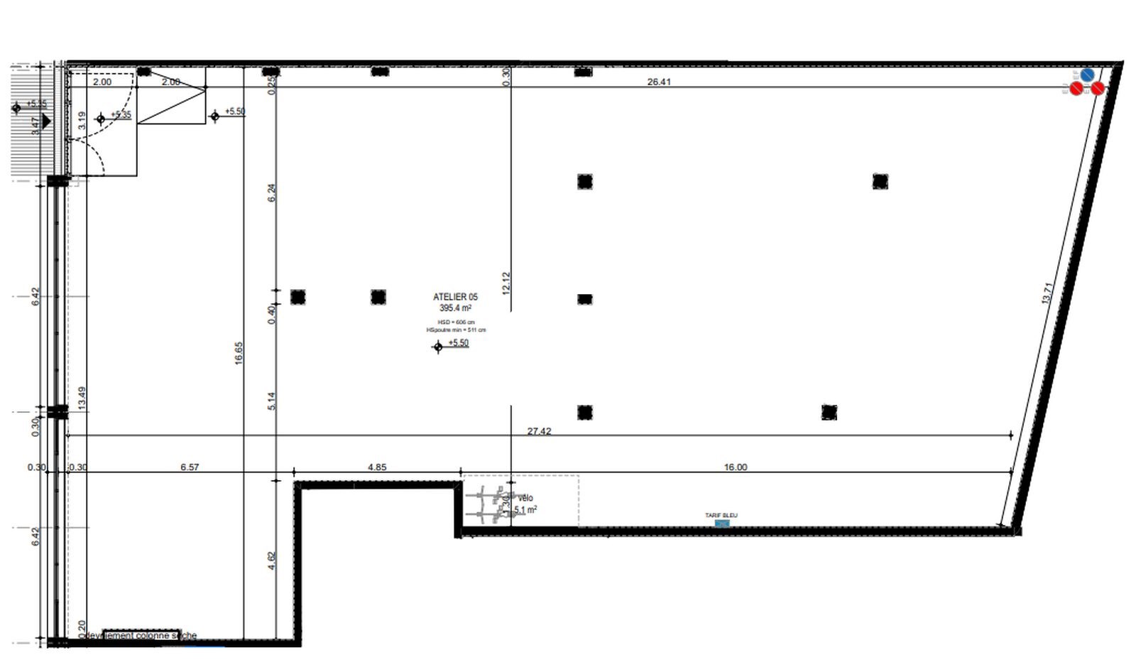 Hauteur sous poutre : entre 4,7 et 5,10 m