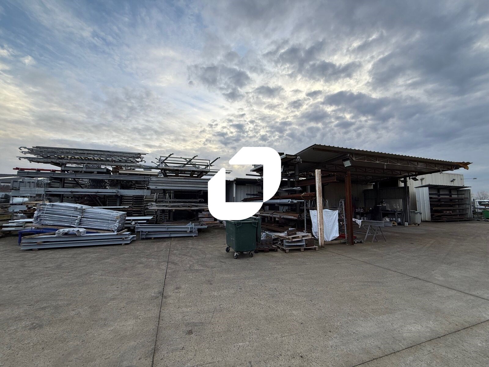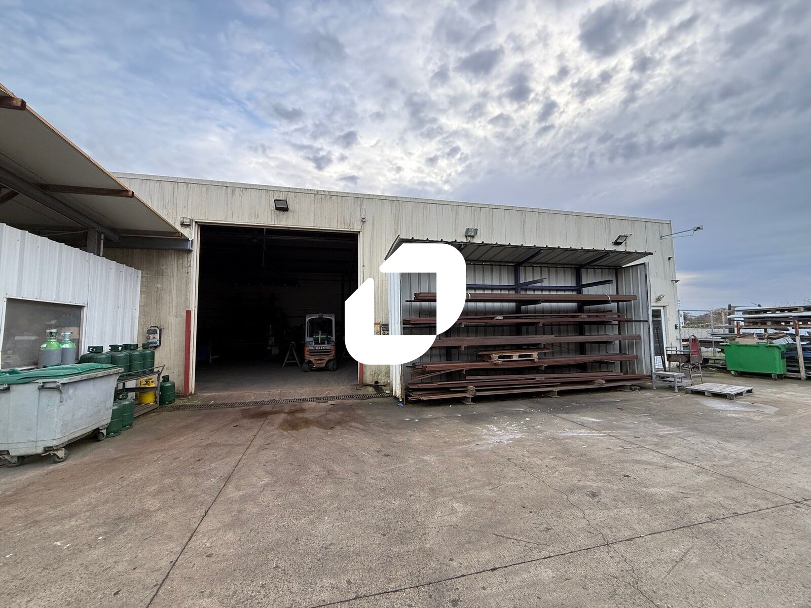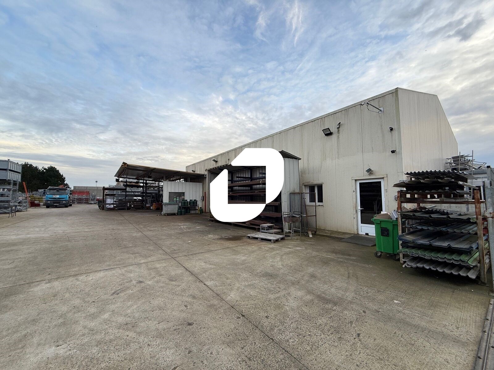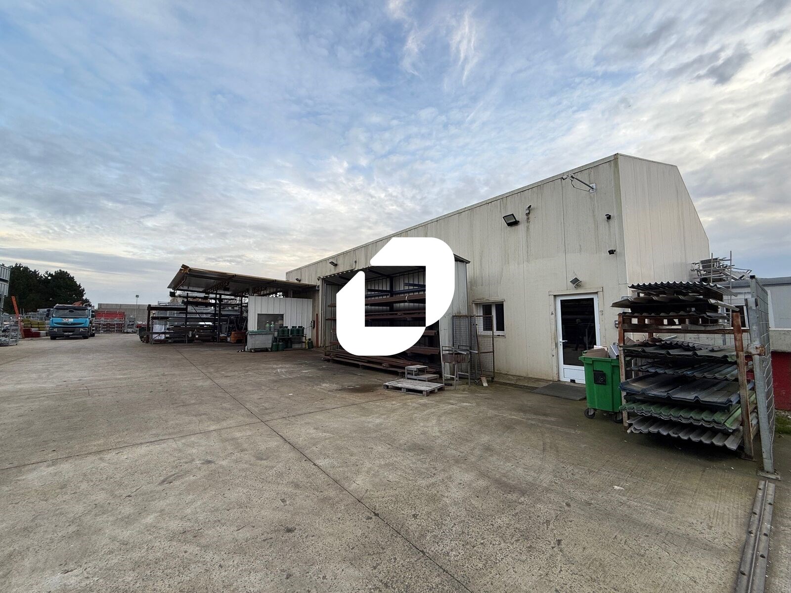 . Façade en bardage. Accès véhicules légers et poids lourds