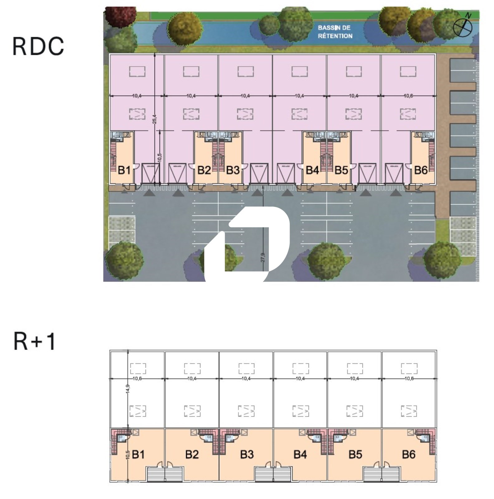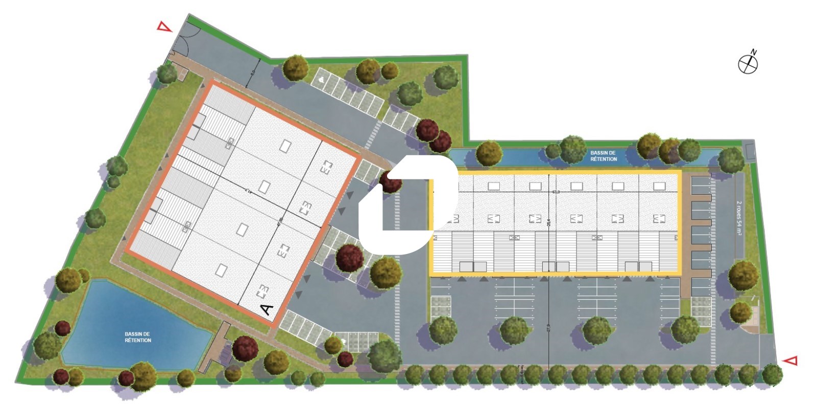 . Site clos par portail électrique. Espace verts paysagé, bordures, trottoirs
