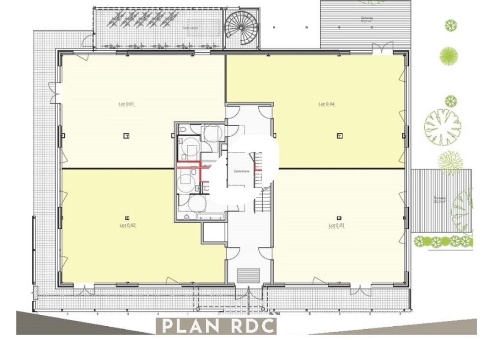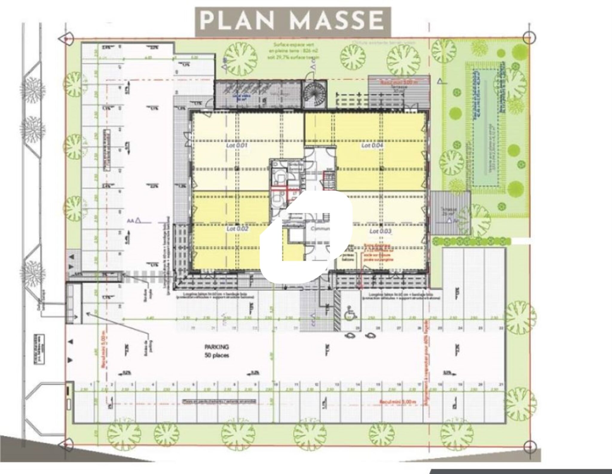 Les lots sont livrés prêt à cloisonner. Chaque lot dispose de ses emplacements de parking.