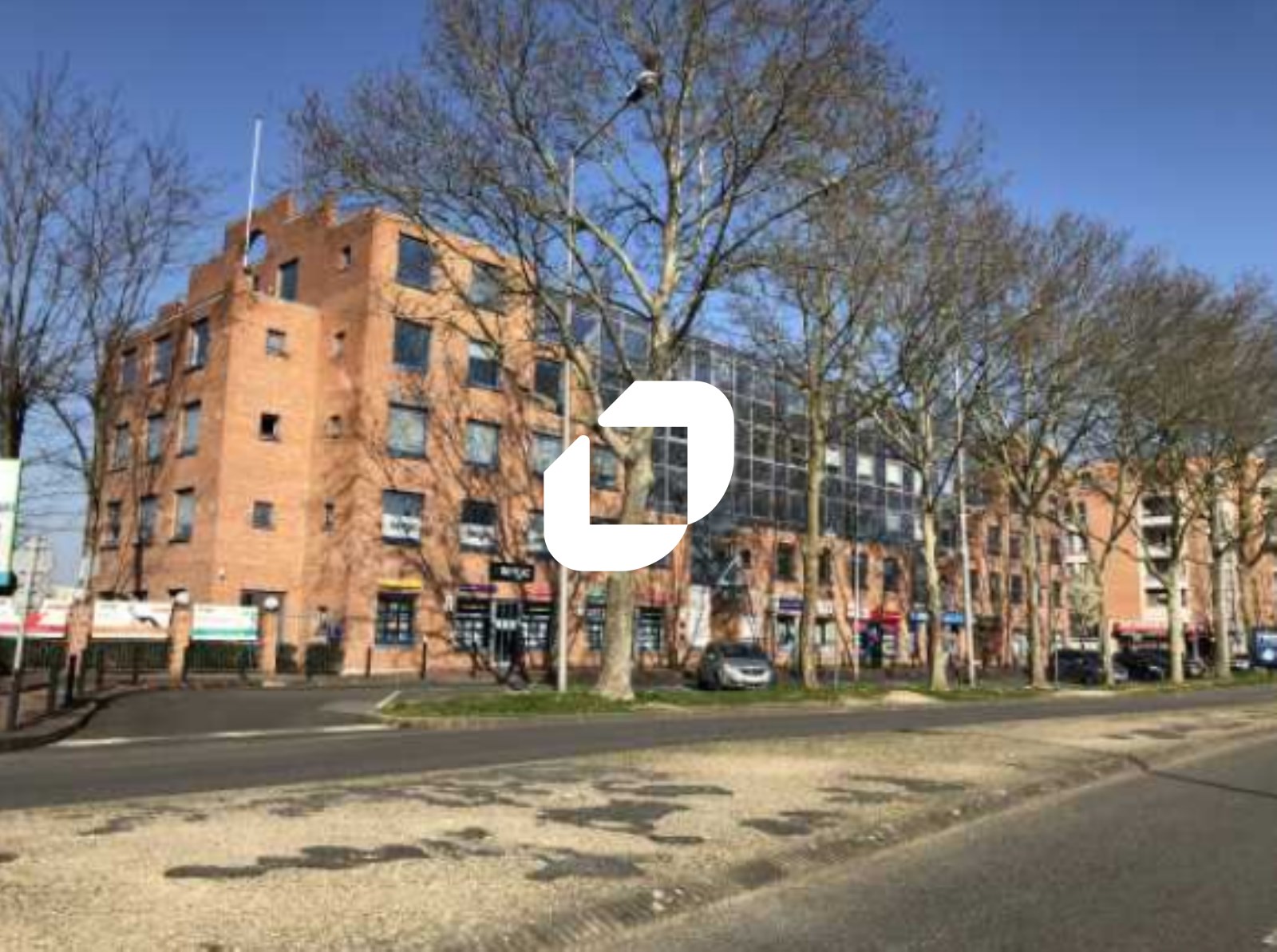 . Immeuble de bureaux en R+4 de bon standing récent avec des commerces en pied d'immeuble. Construction en ossature béton et façade en brique