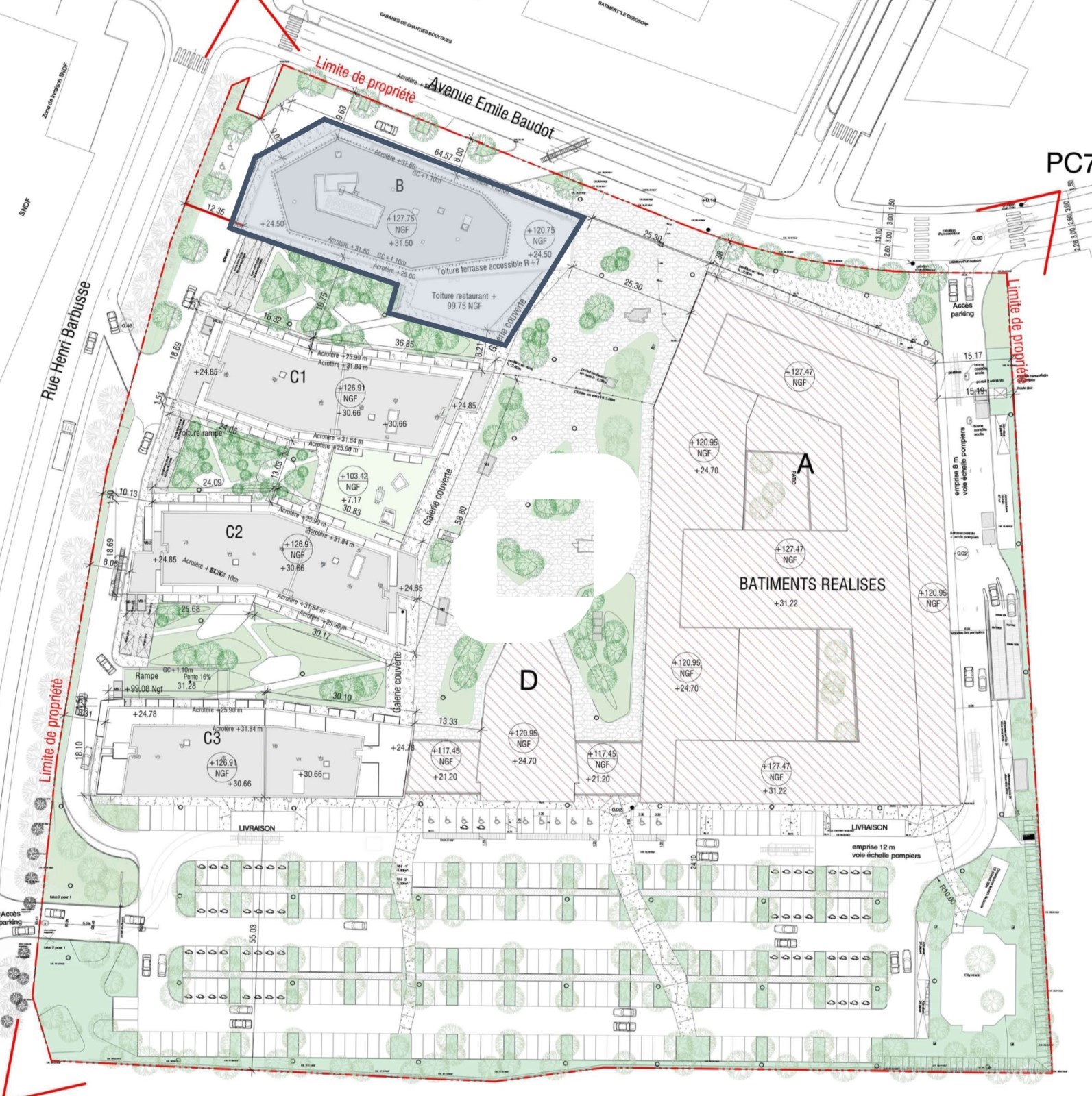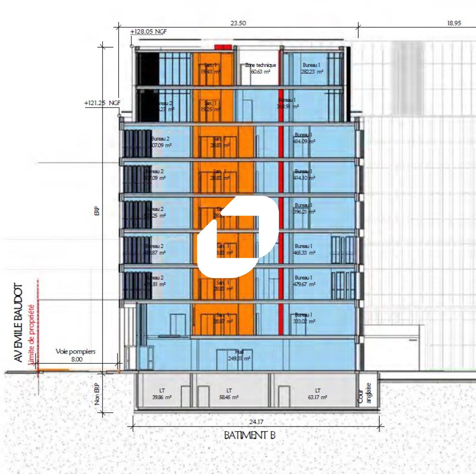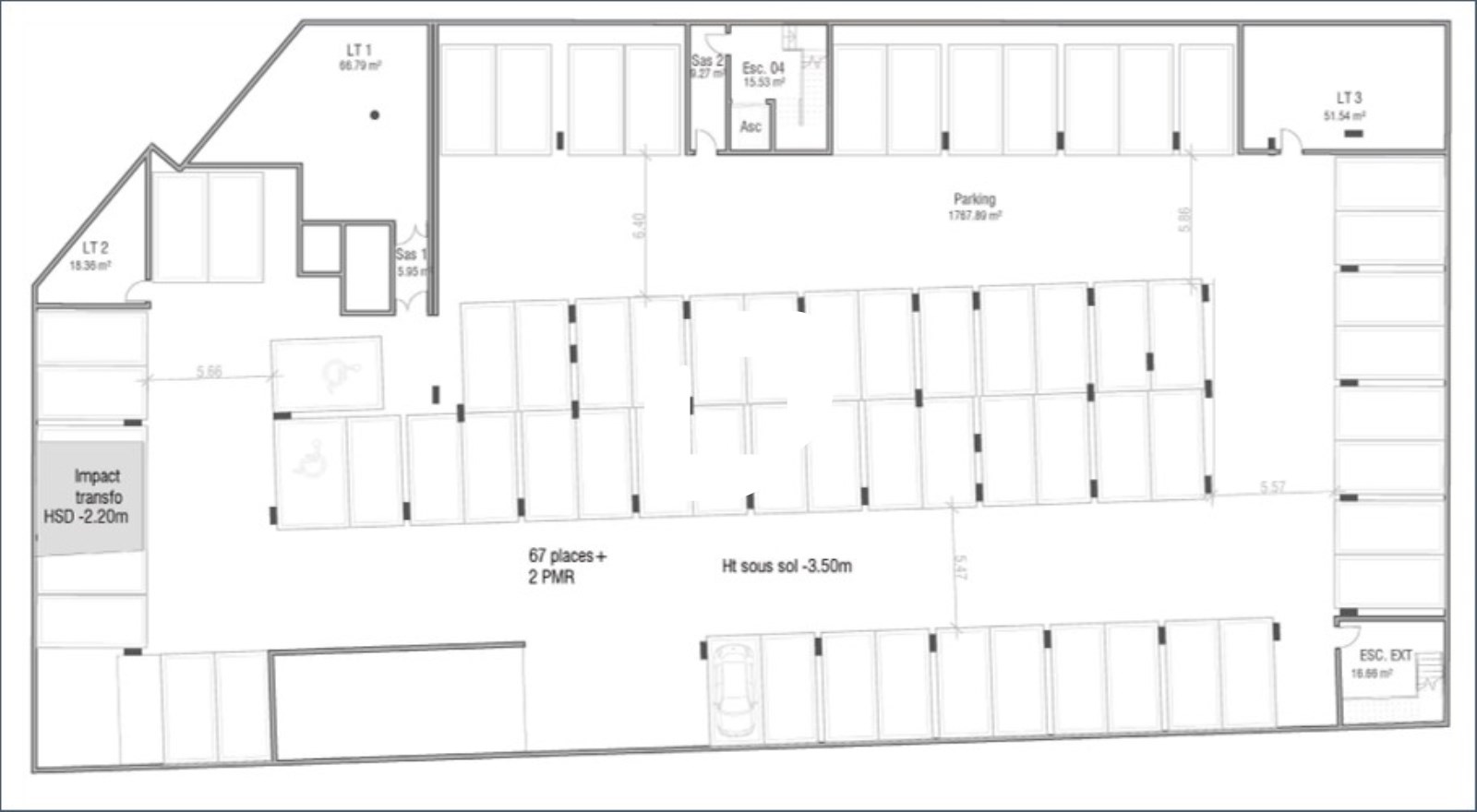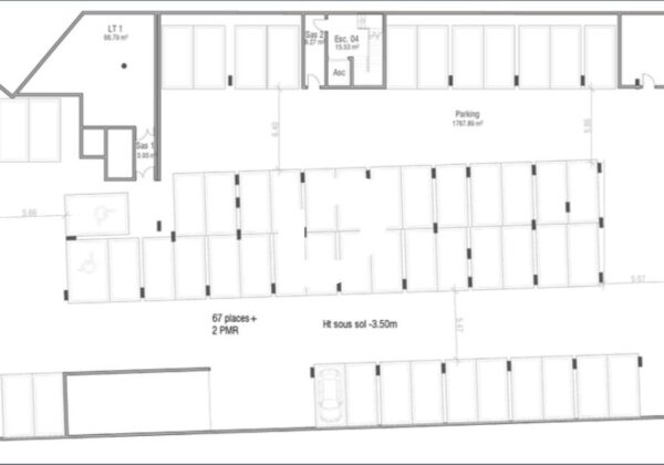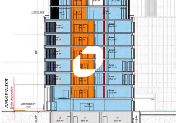 . Projet prévoyant la réalisation d'un immeuble d'environ 8 500 m² de bureaux sur 8 niveaux et de trois parkings souterrain. Classification ERP & Conformité PMR