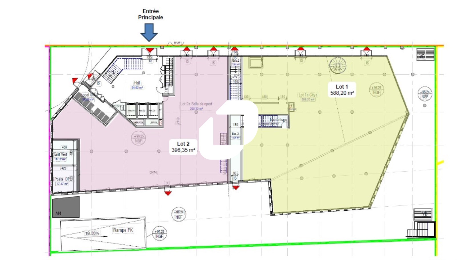 | Bureaux | Rez-de-Chaussée | 396 m² | 3 969.44 | 19.00 |