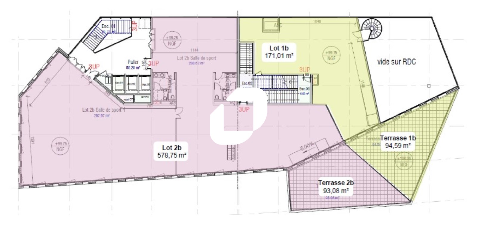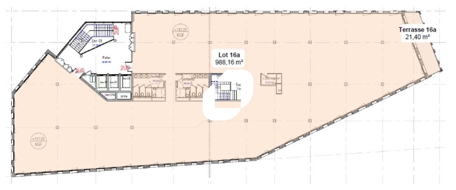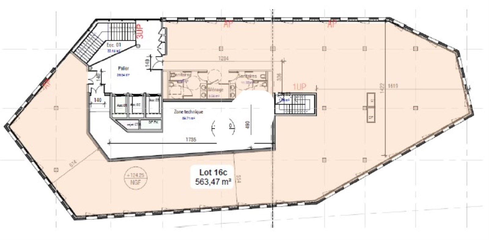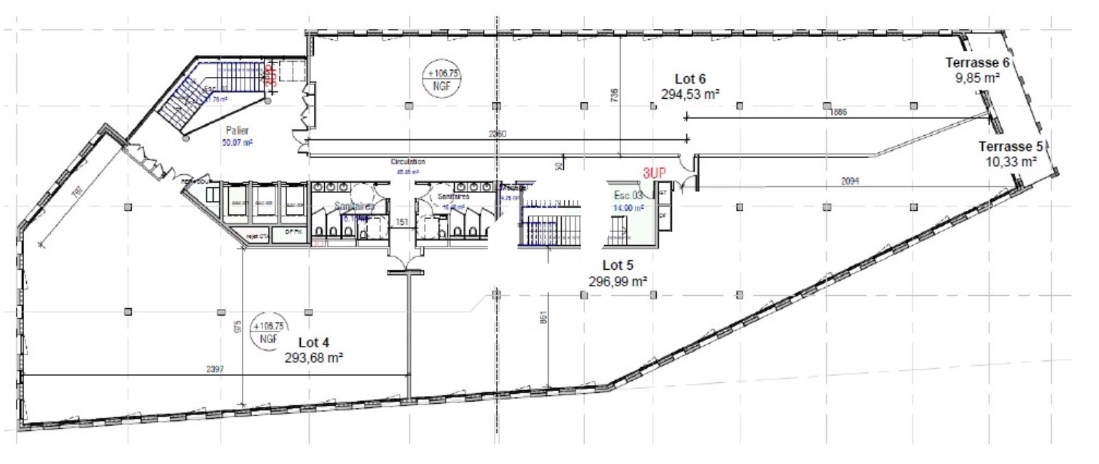 | Bureaux | 5ème étage | 317 m² | 3 979.36 | 19.00 |