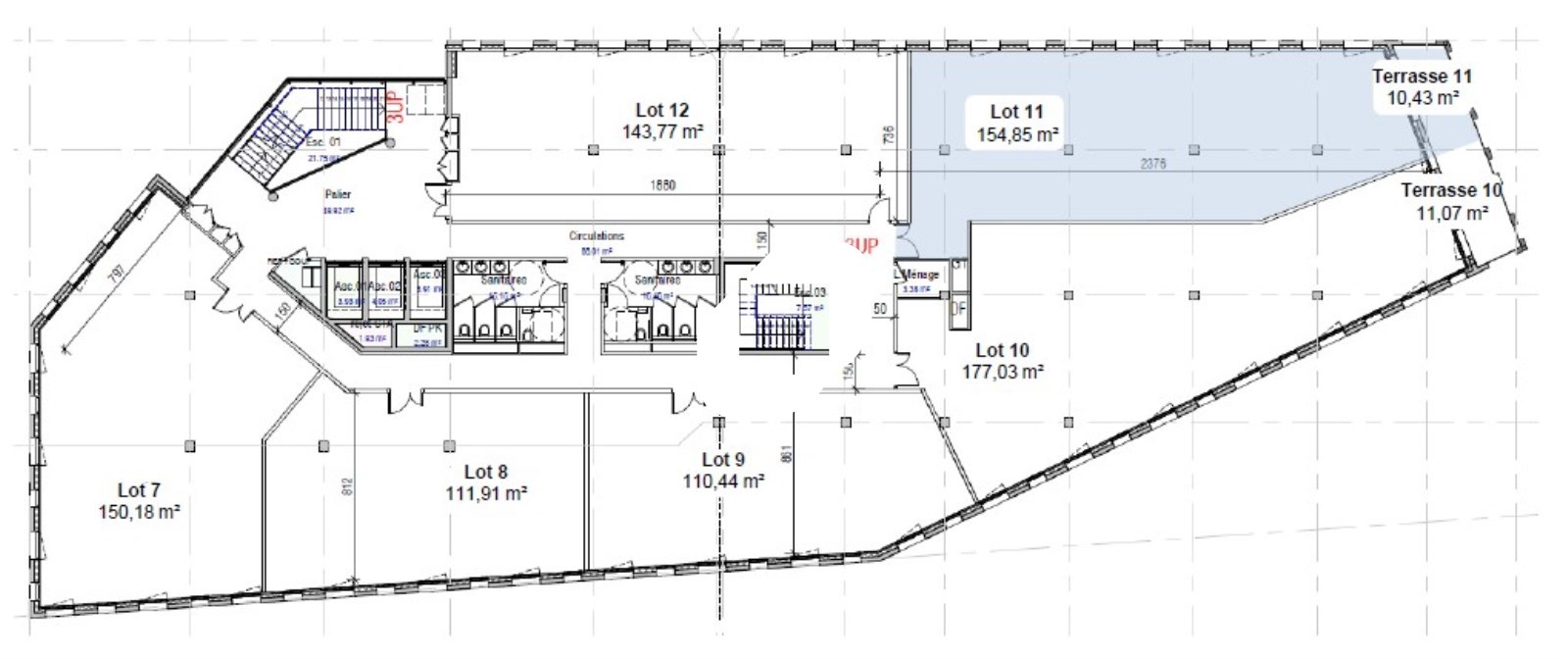 . Bureaux livrés en open-space (cloisonnement possible)