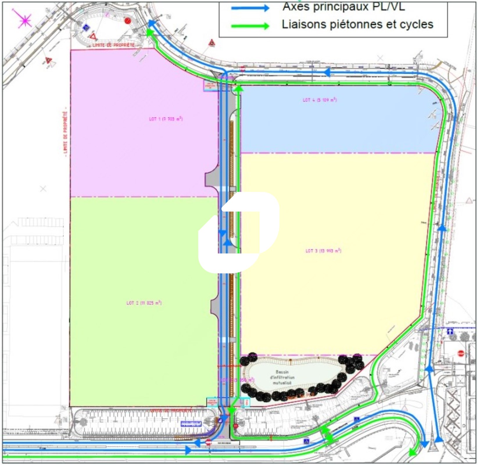 • Eaux pluviales vers noues paysagères créées