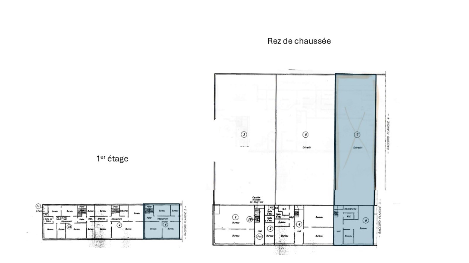 . Bureaux cloisonnés en R+1 et espace ouvert