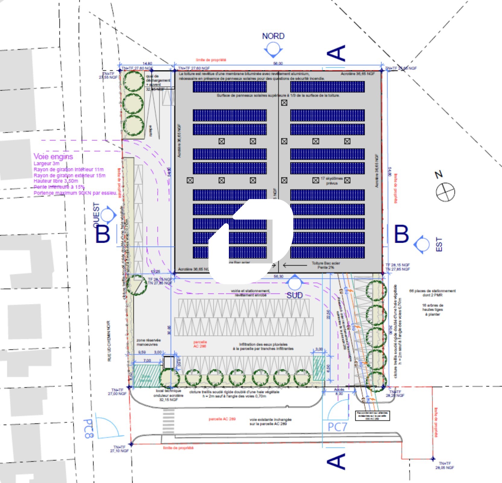 . Accès véhicules léger et poids lourds. Aire de manœuvre